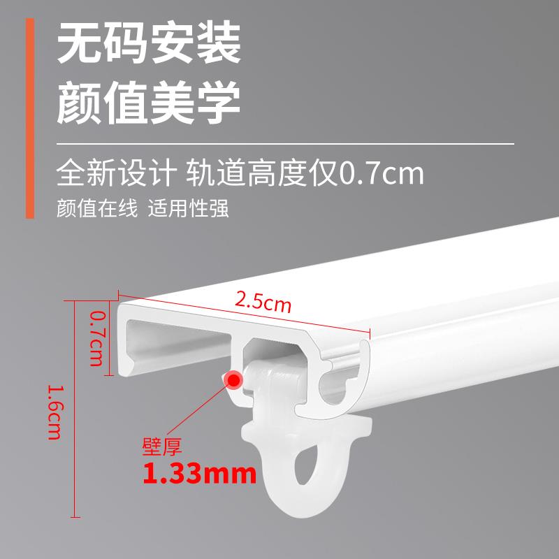超薄窗帘轨道顶装内开窗极窄窗帘杆静音铝合金极薄免打孔安装滑轨