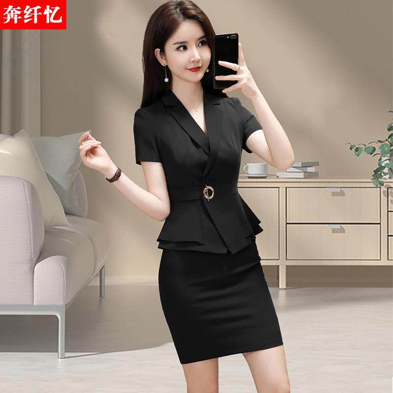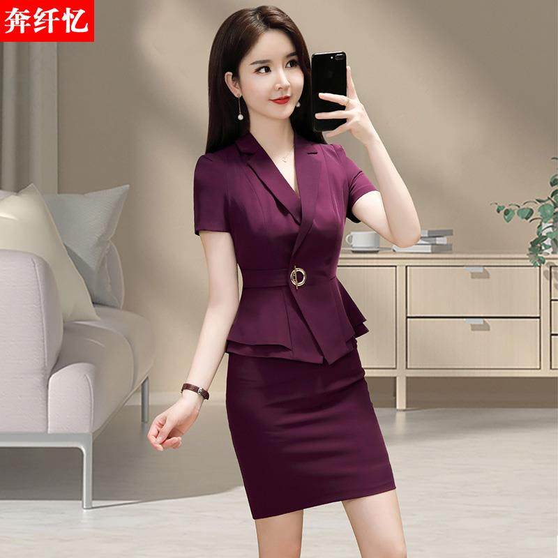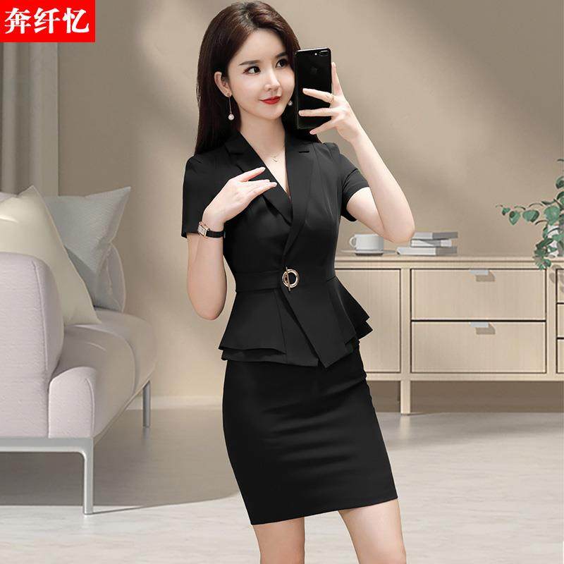 职业装女套装夏季气质美容师西装套裙工作服酒店前台接待工装制服