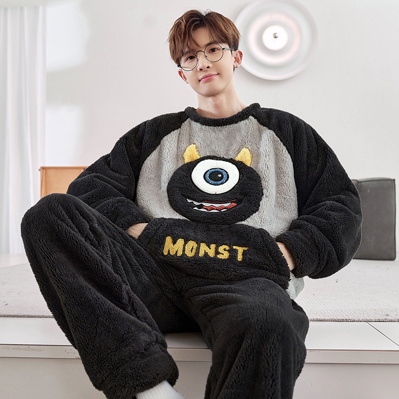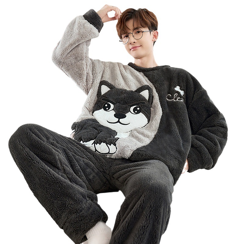 秋冬季睡衣男士珊瑚绒加绒加厚大码卡通大童青少年学生法兰绒
