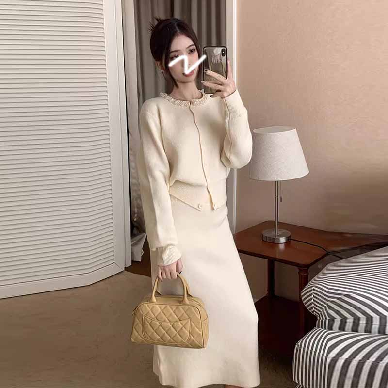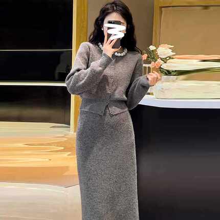 小香风套装女2024秋冬新高级感漂亮气质名媛针织毛衣半身裙两件套
