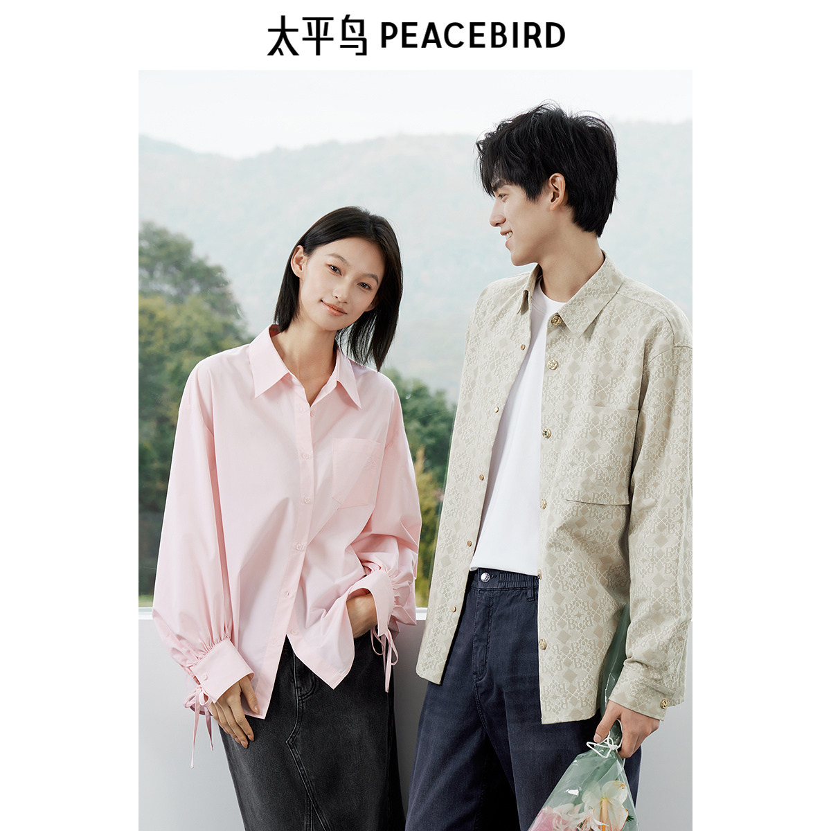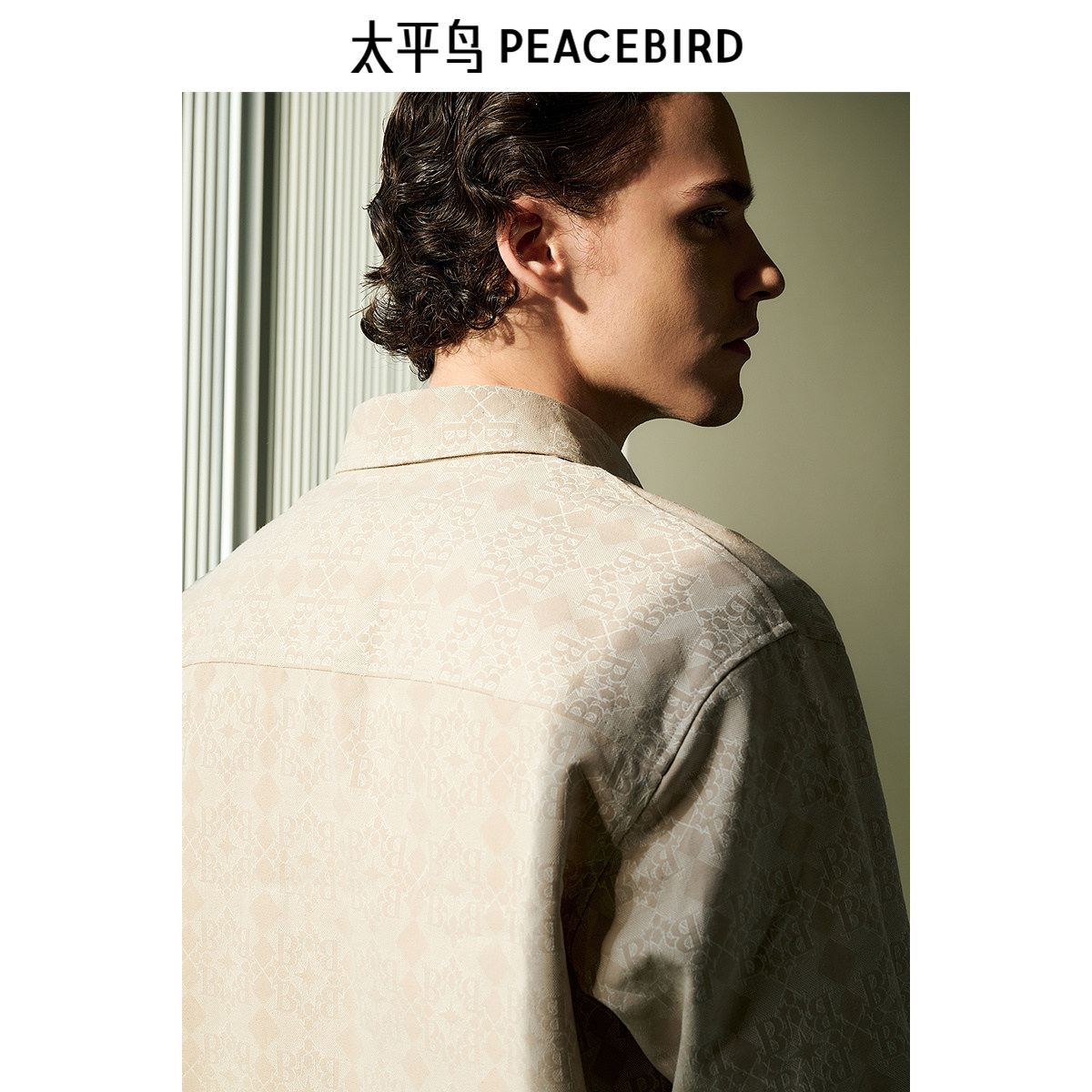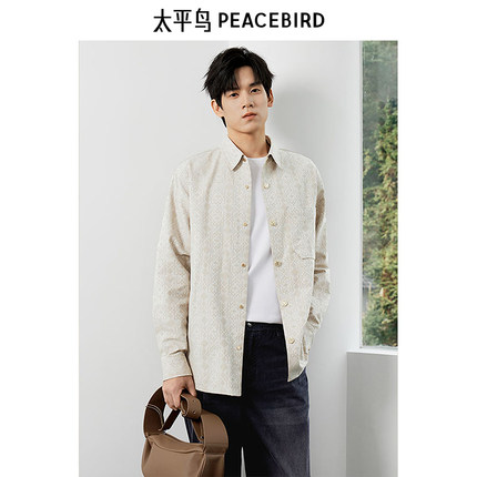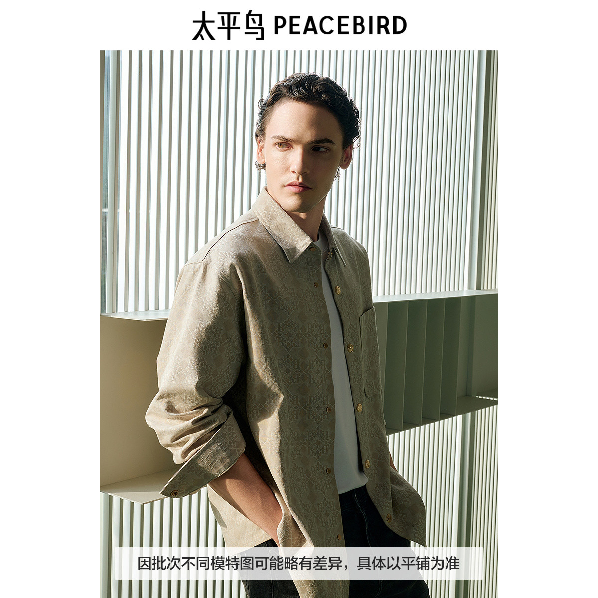 太平鸟男装 休闲衬衫秋季字母提花休闲宽松长袖衬衣外套