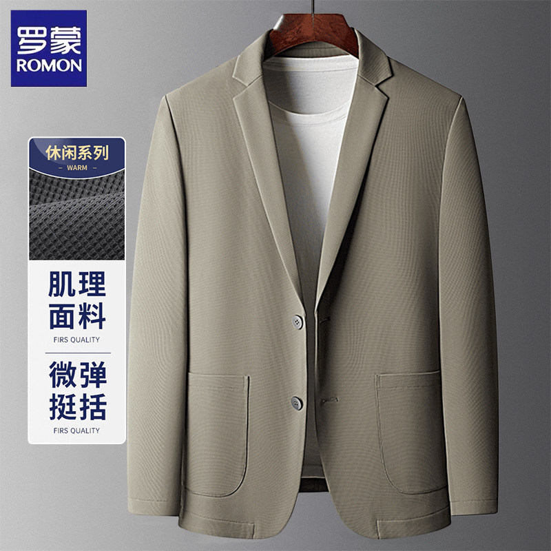 罗蒙新款西服男士秋季商务休闲抗皱肌理垂顺挺括百搭上衣外套