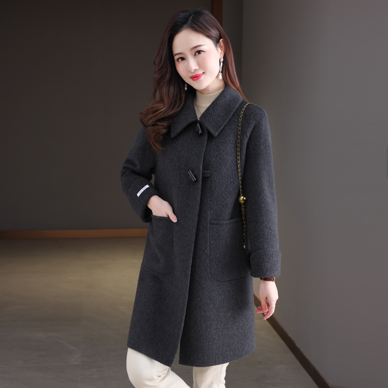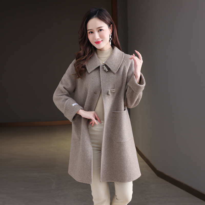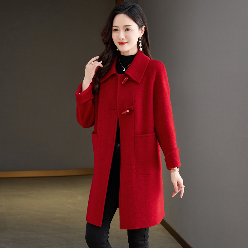 红色减龄长毛款双面羊绒大衣女2025年新款高级感中长款羊毛呢外套