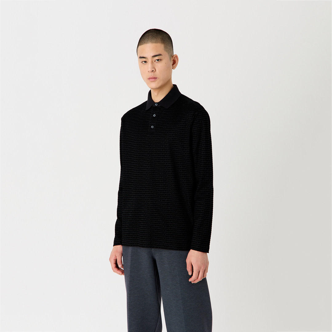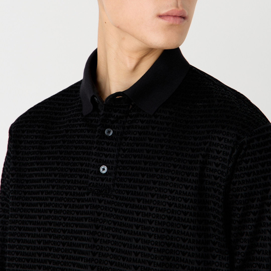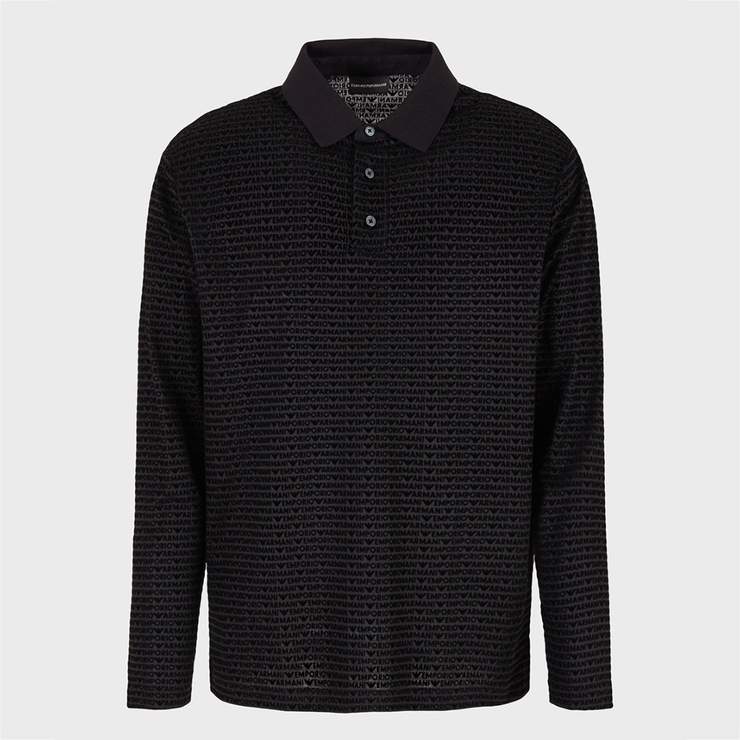 Armani/阿玛尼EA 男士满印时尚休闲长袖POLO衫 3D1FE7 1JUVZ