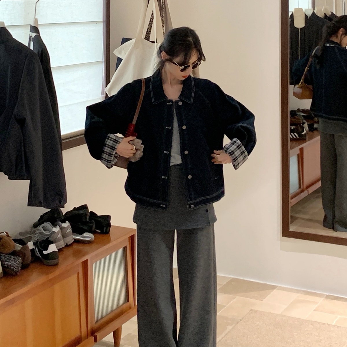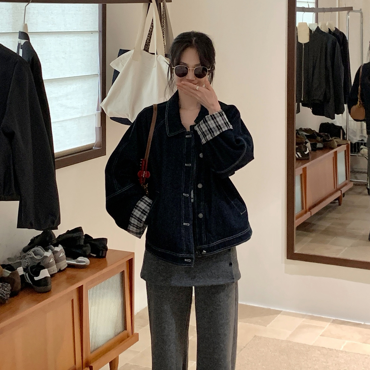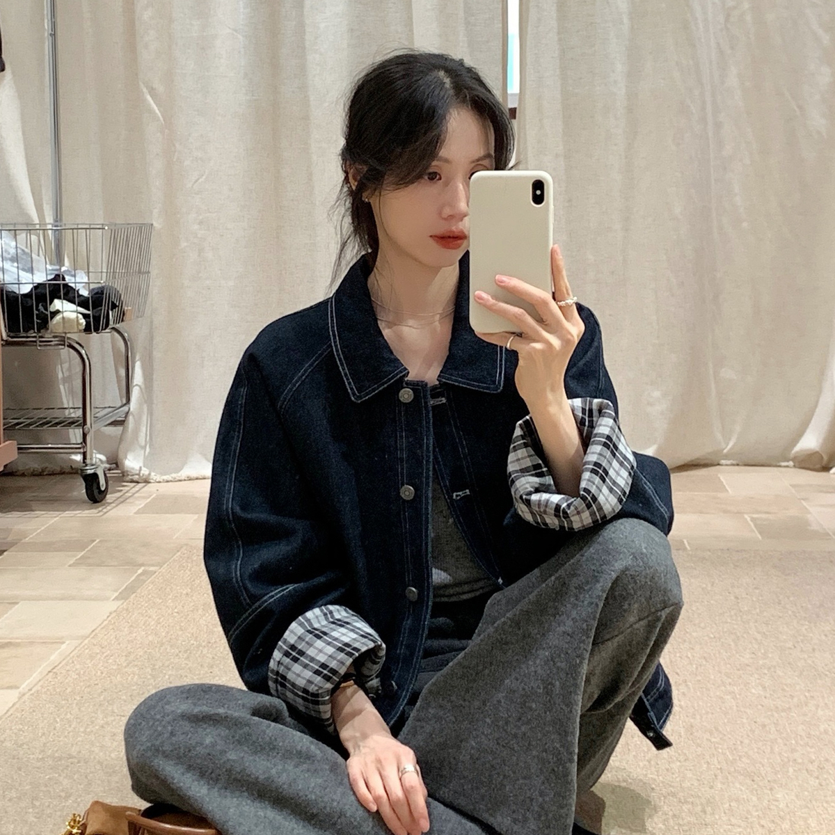 Y.JIA 伊嘉-袖口撞色宽松bf慵懒风小个子加厚短款牛仔外套7811-55