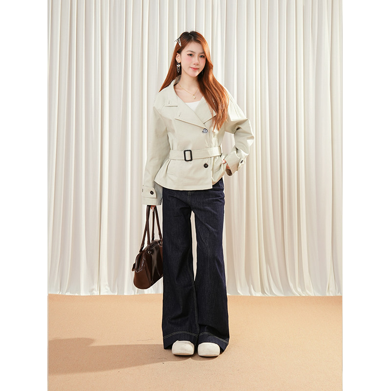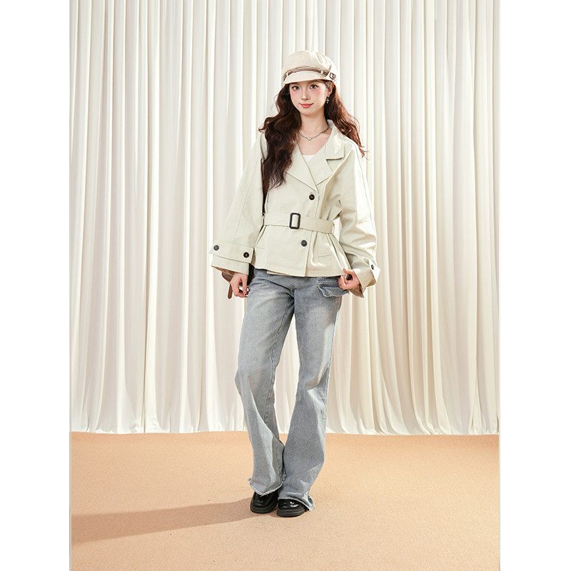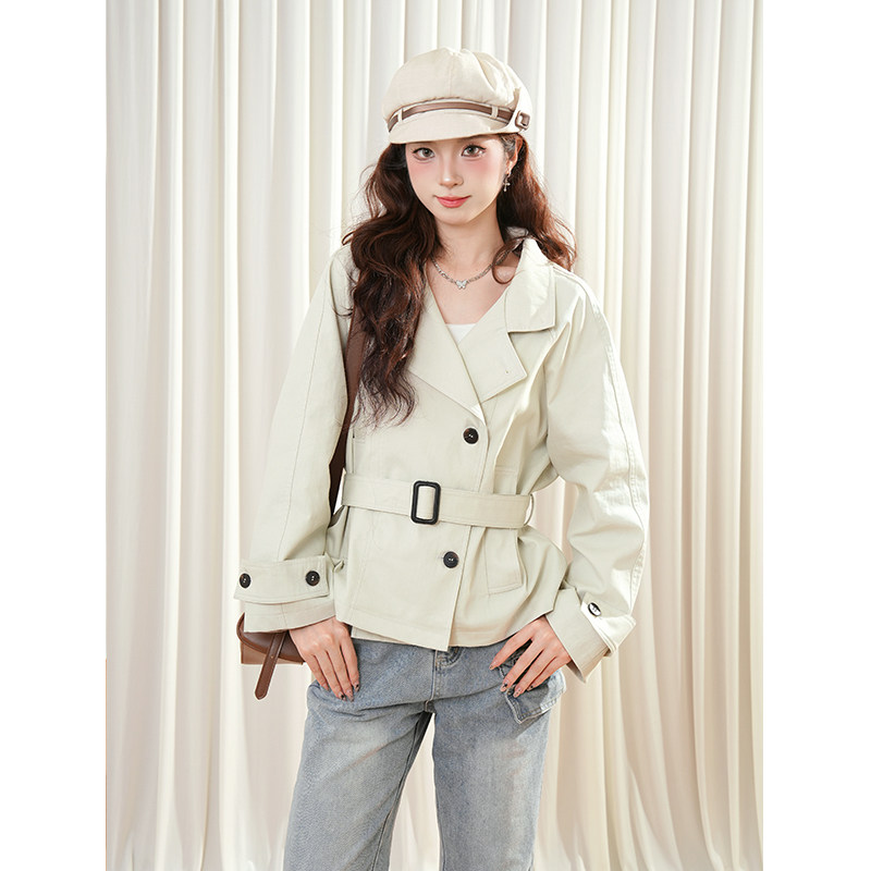 首尔假日英伦风立领收腰风衣女2025秋季韩系简约通勤收腰短款外套