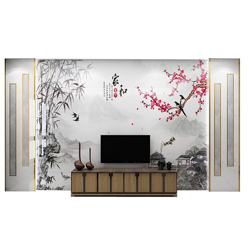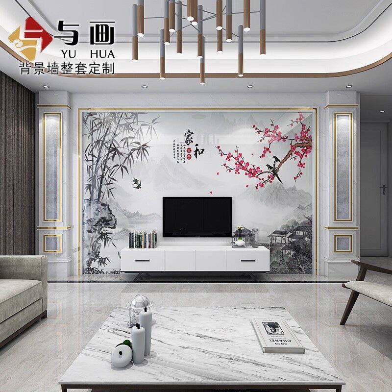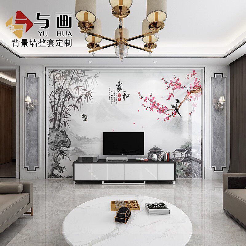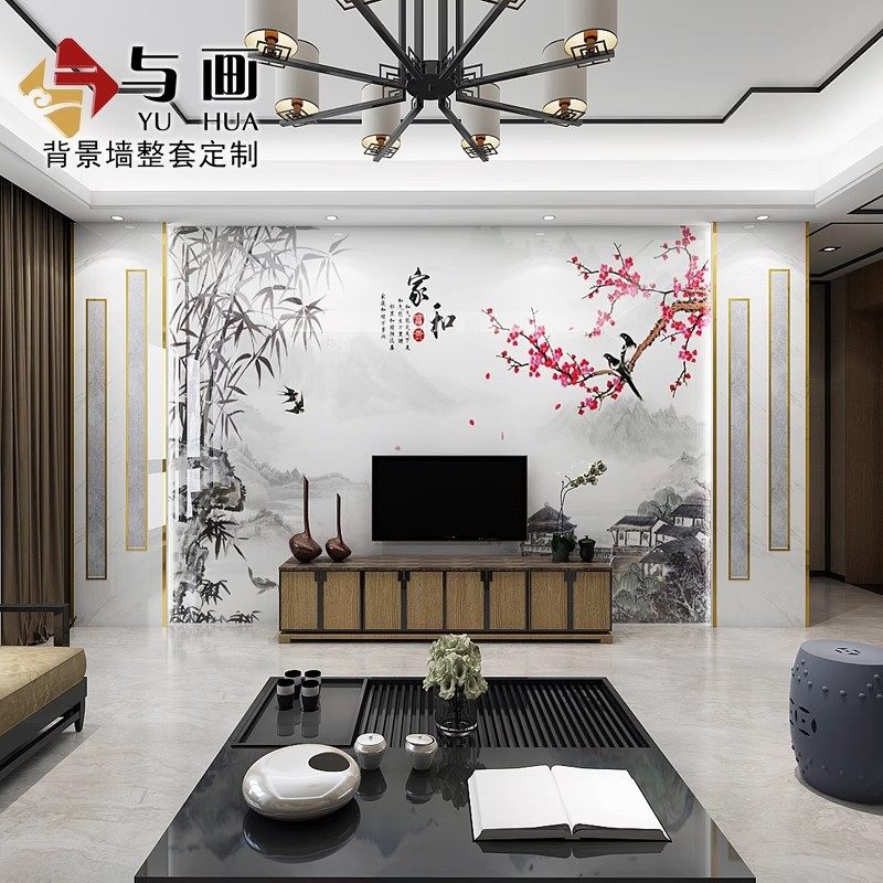 电视背景墙瓷砖微晶石新中式仿大理石客厅大气山水画装饰边框大板