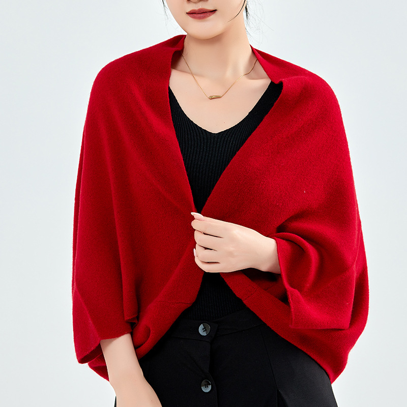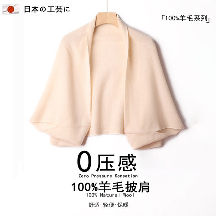 日本100%羊毛披肩秋冬外搭披风针织毛衣开衫外套围巾两用防寒保暖