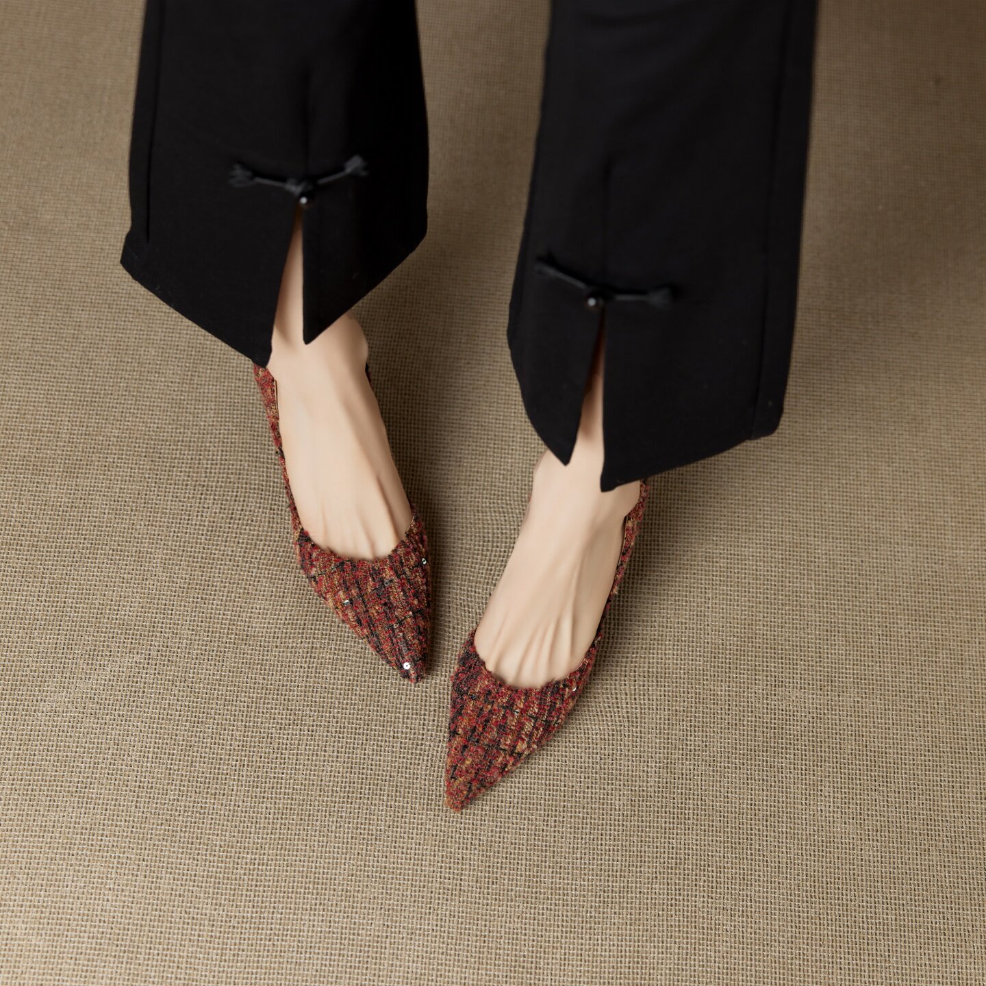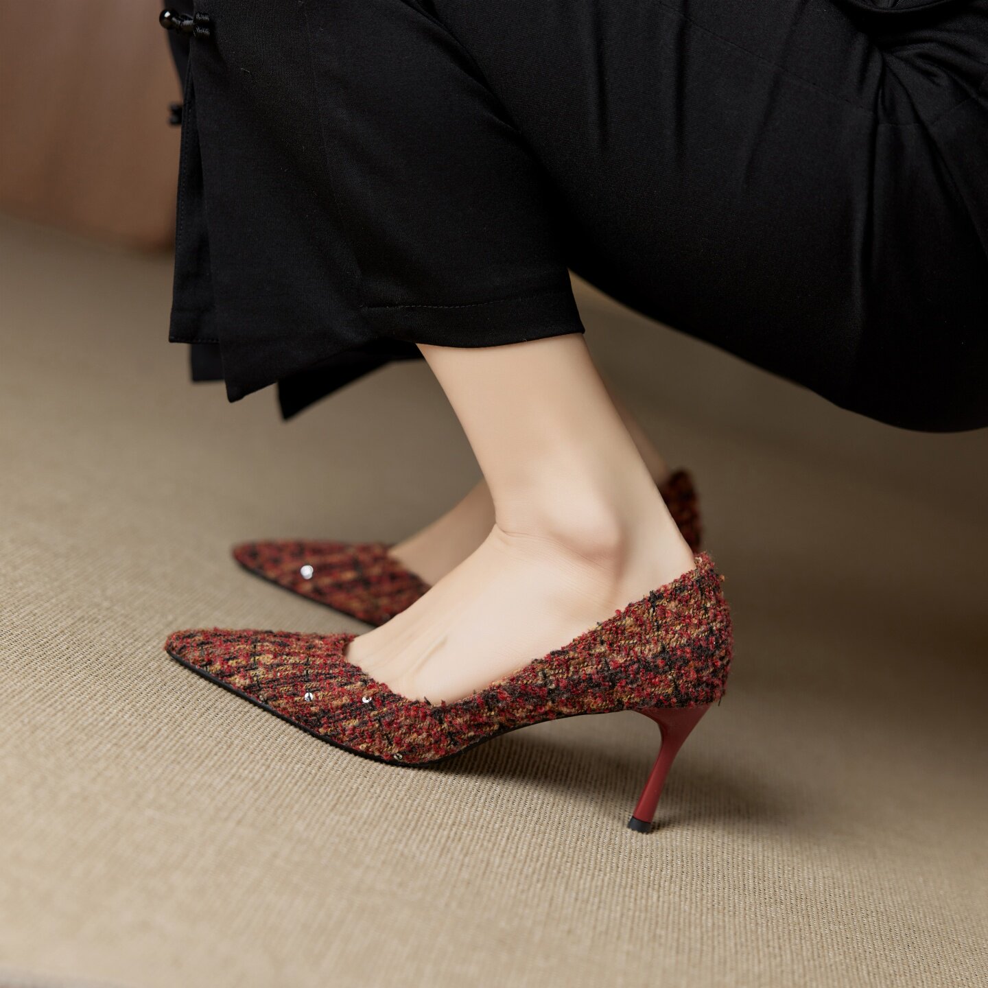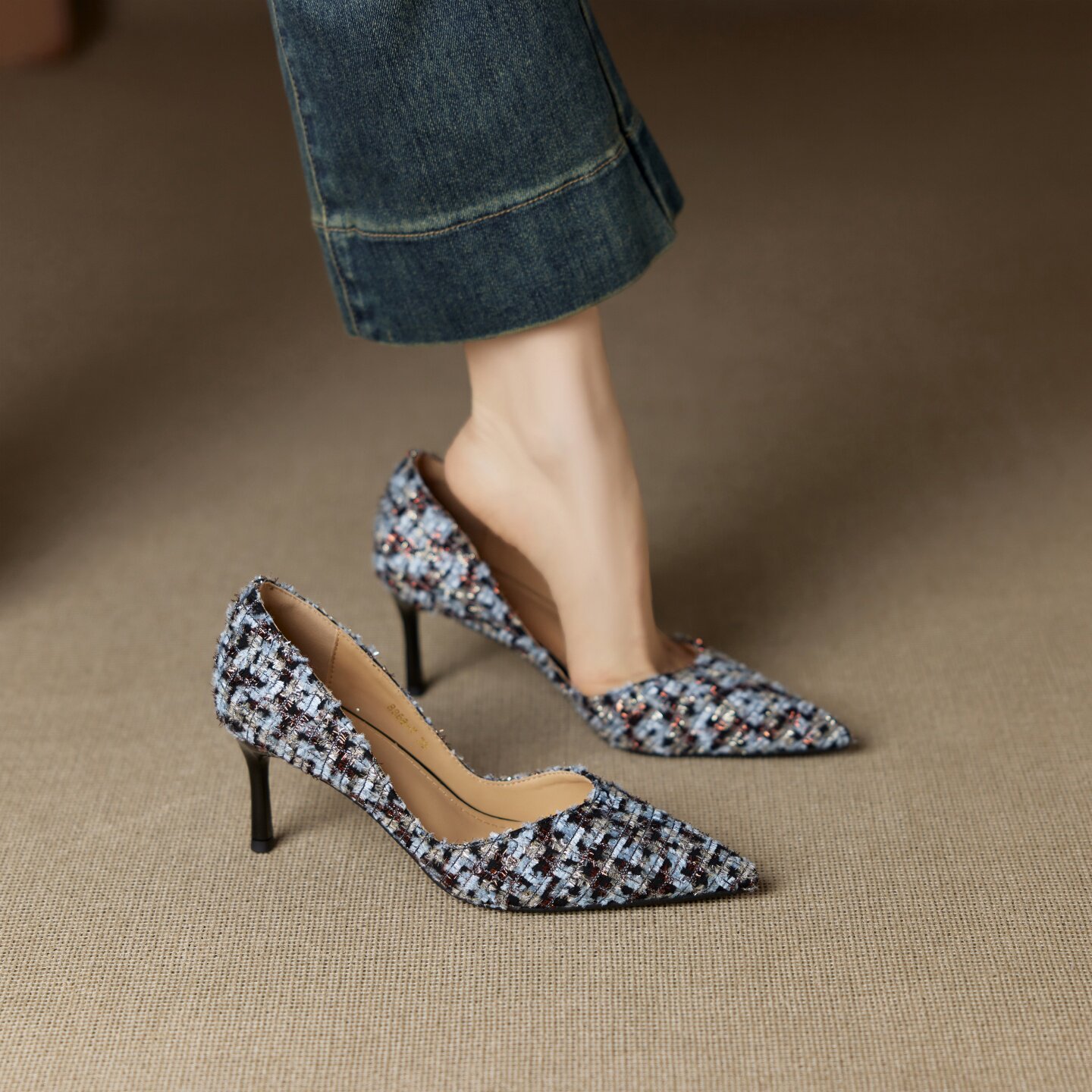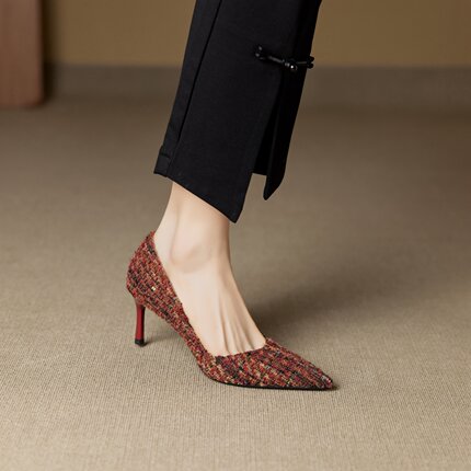 法式小香风真皮尖头细跟单鞋
