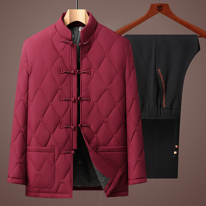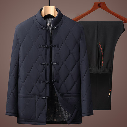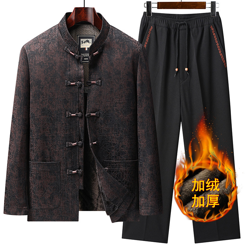 唐装男中老年加绒保暖套装