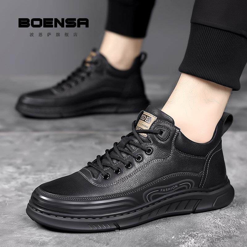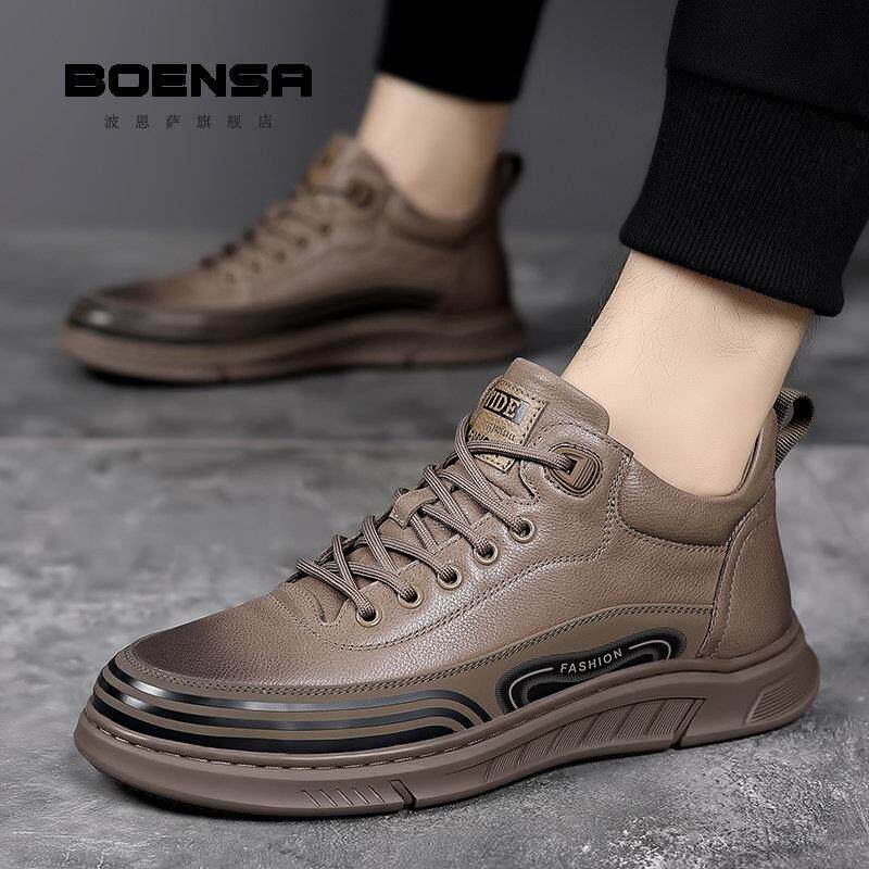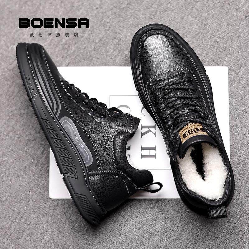 波恩萨高帮鞋男鞋冬季皮鞋潮流真皮运动百搭保暖加绒加厚羊毛棉鞋