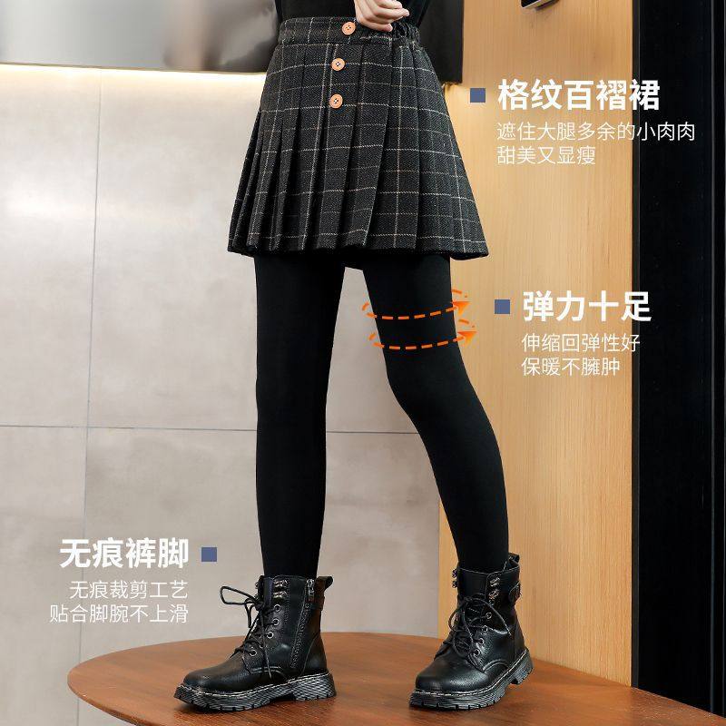 女童加绒打底裤裙秋冬季新款儿童假两件裙裤百褶裙中大童加厚裤子