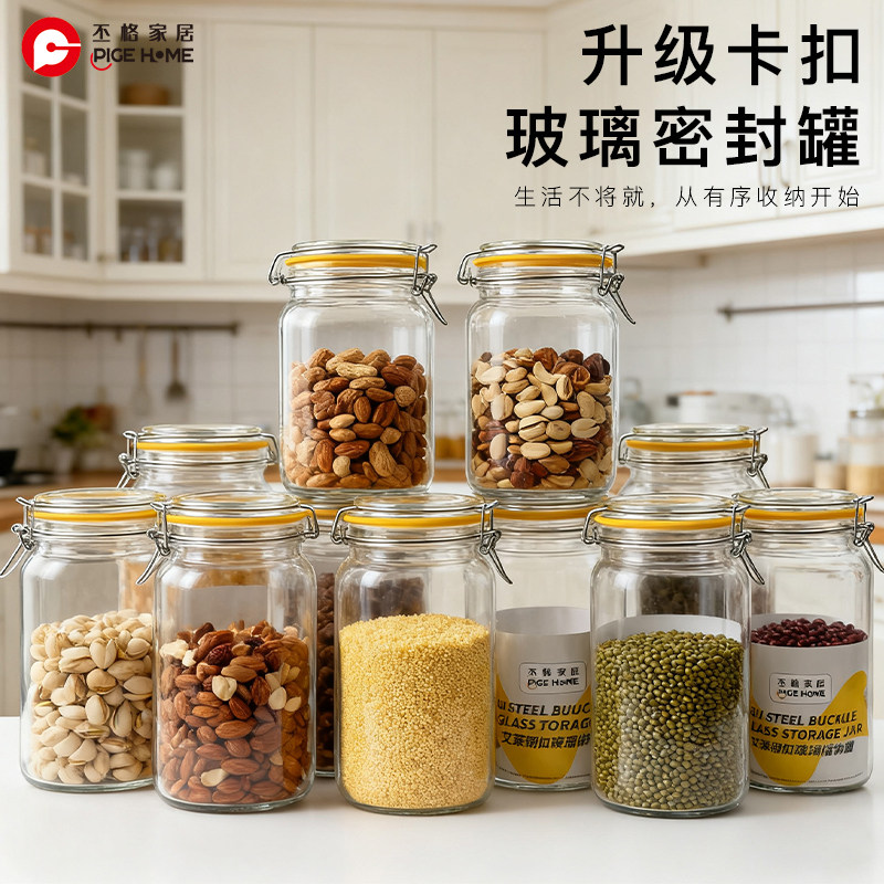 丕格无铅玻璃钢扣密封罐家用储物
