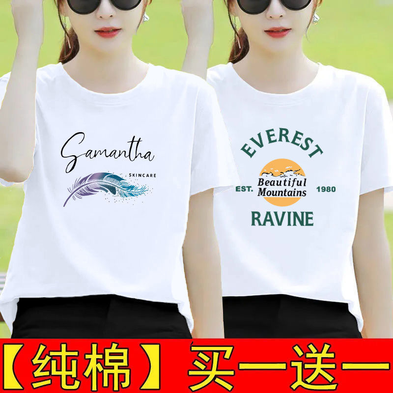 纯棉白色短袖t恤女夏装宽松半袖2025新款体恤打底衫印花百搭上衣
