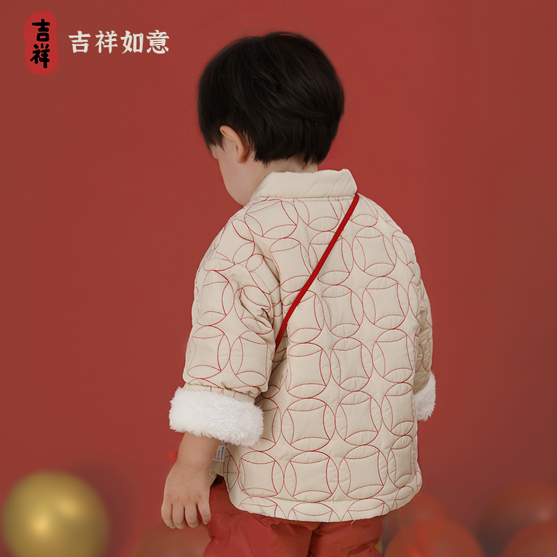 儿童棉服冬季男宝宝加厚保暖新年装女童外穿汉服棉袄婴儿冬装棉衣