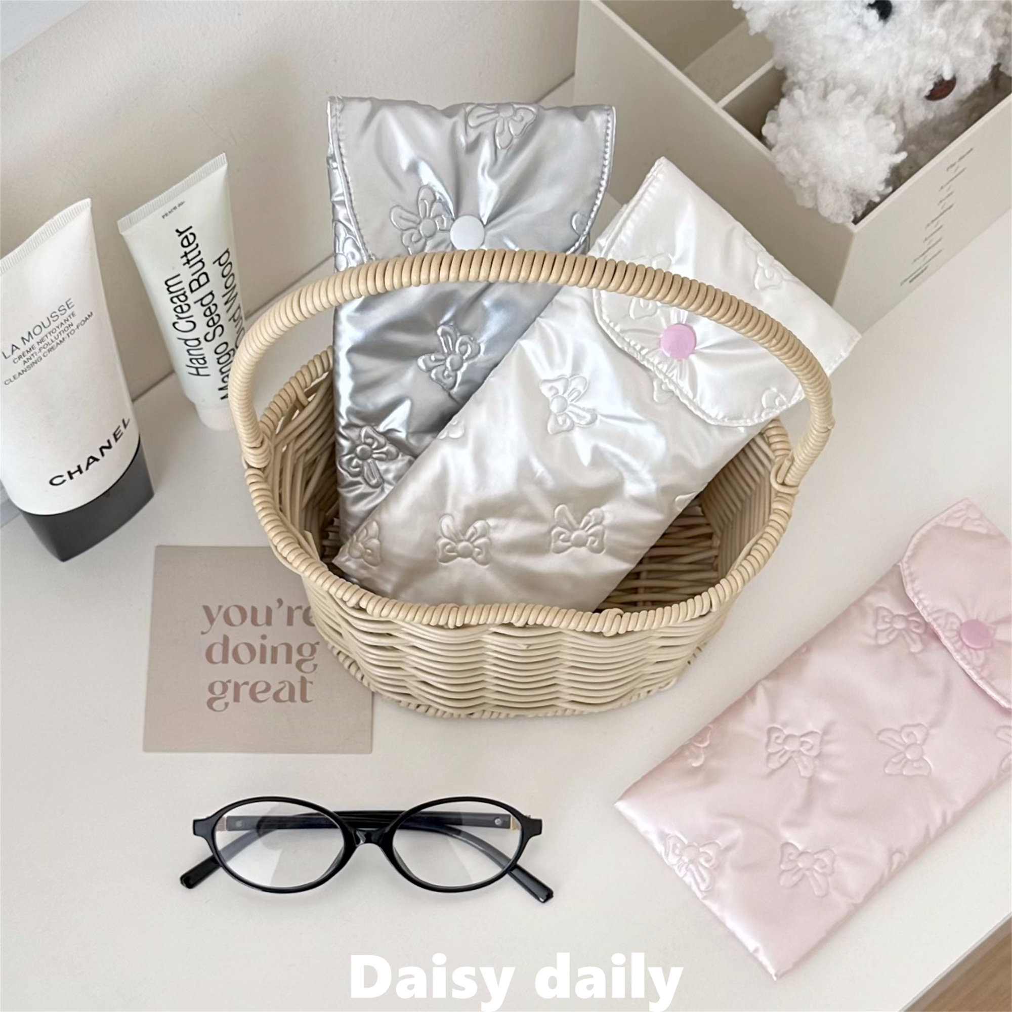 自制ins少女印花眼镜收纳包~防压眼镜袋便携布艺眼镜盒收纳袋笔袋