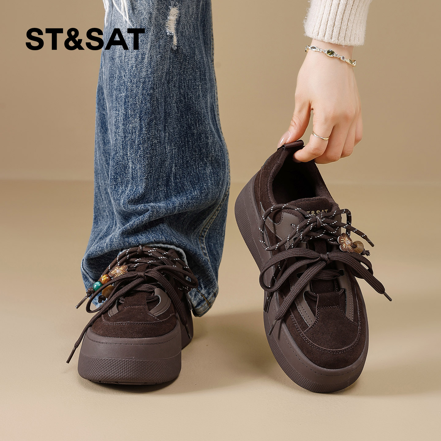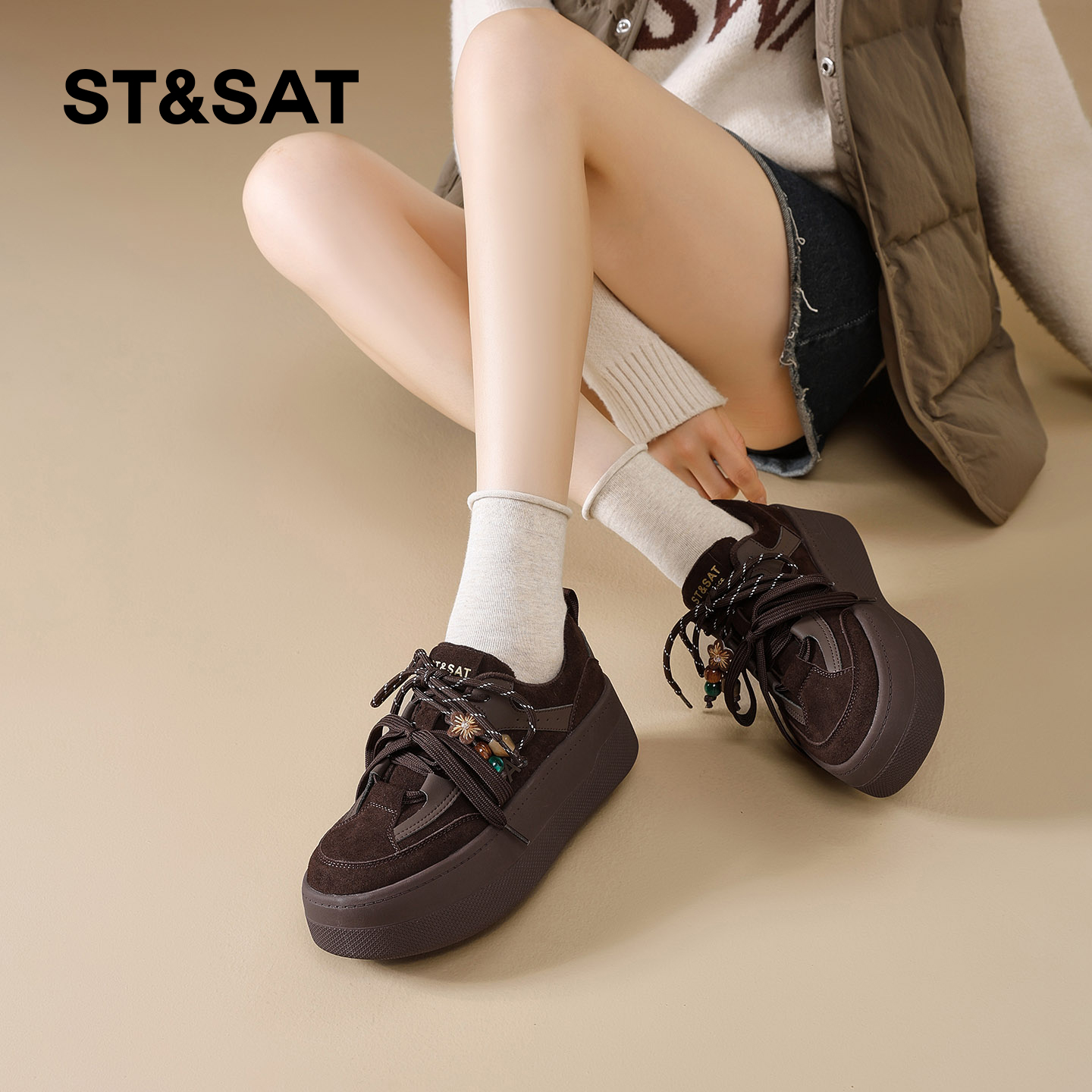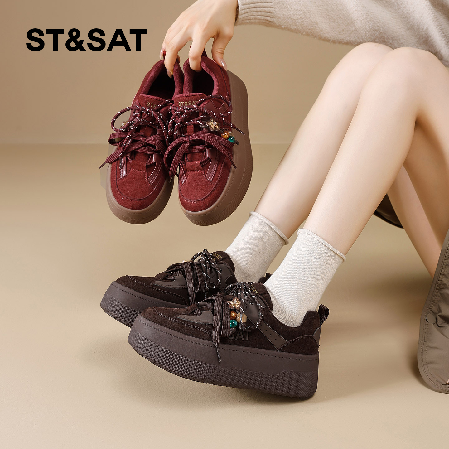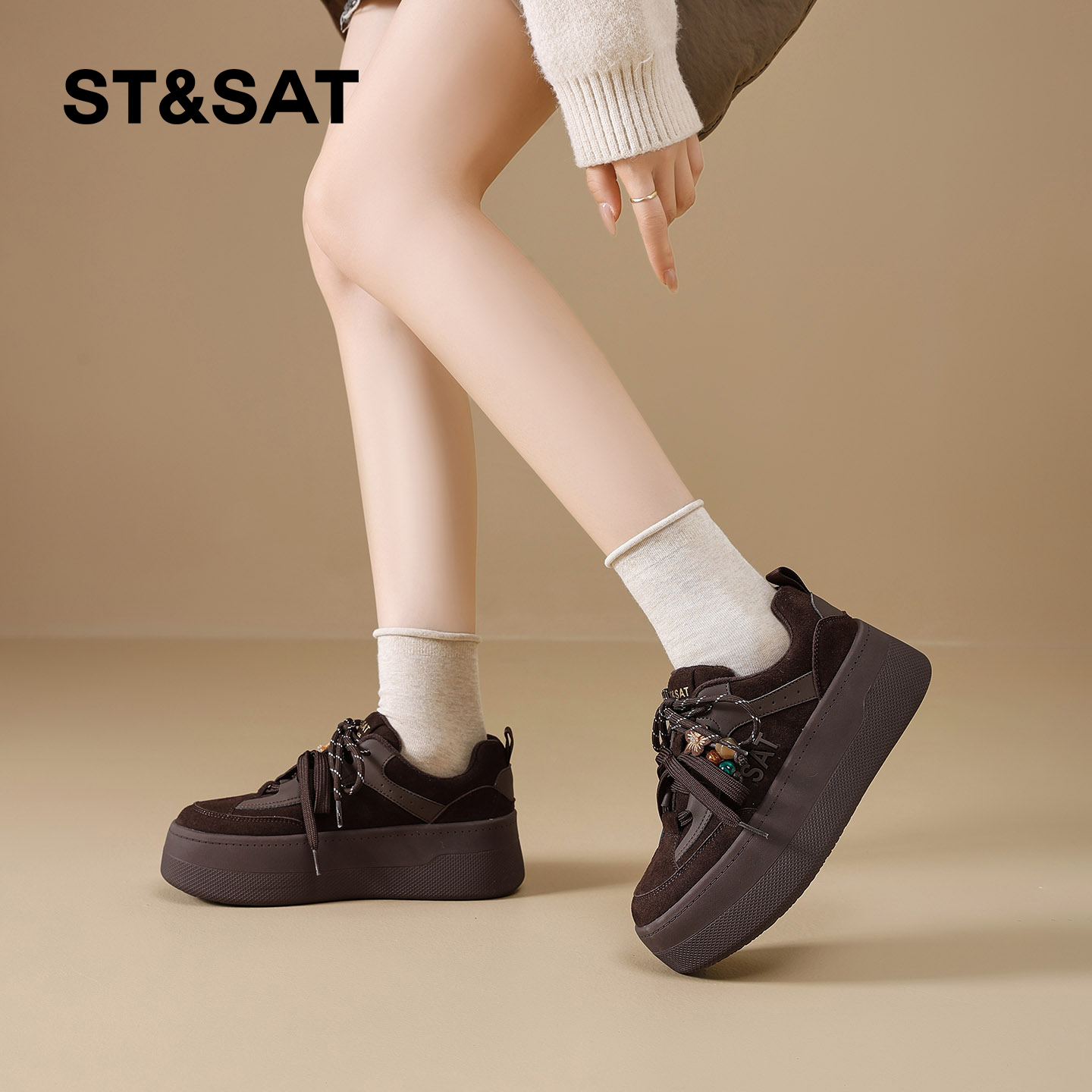 星期六德训鞋女2025冬季新款女鞋女款爆款鞋子厚底加绒运动鞋板鞋