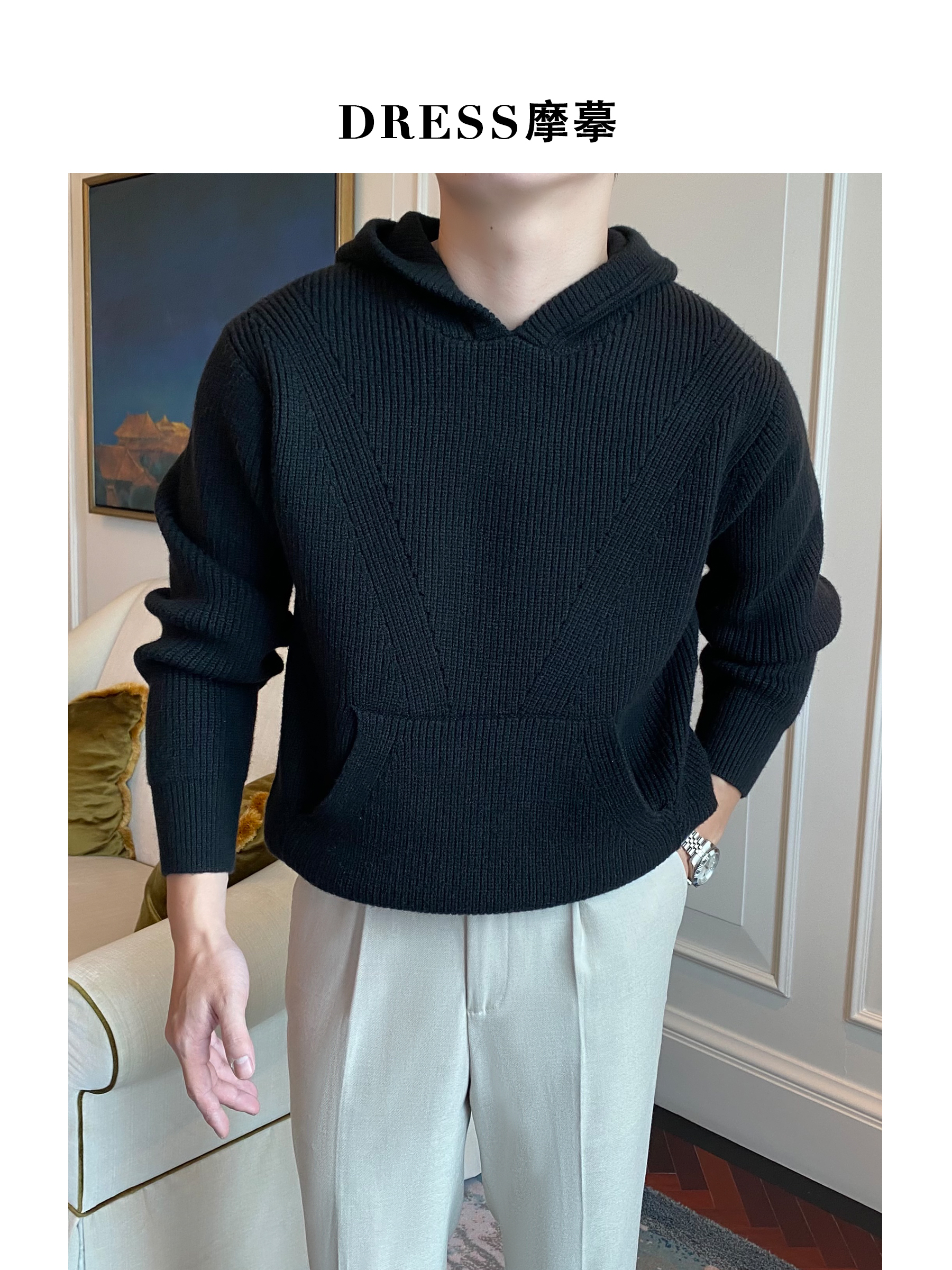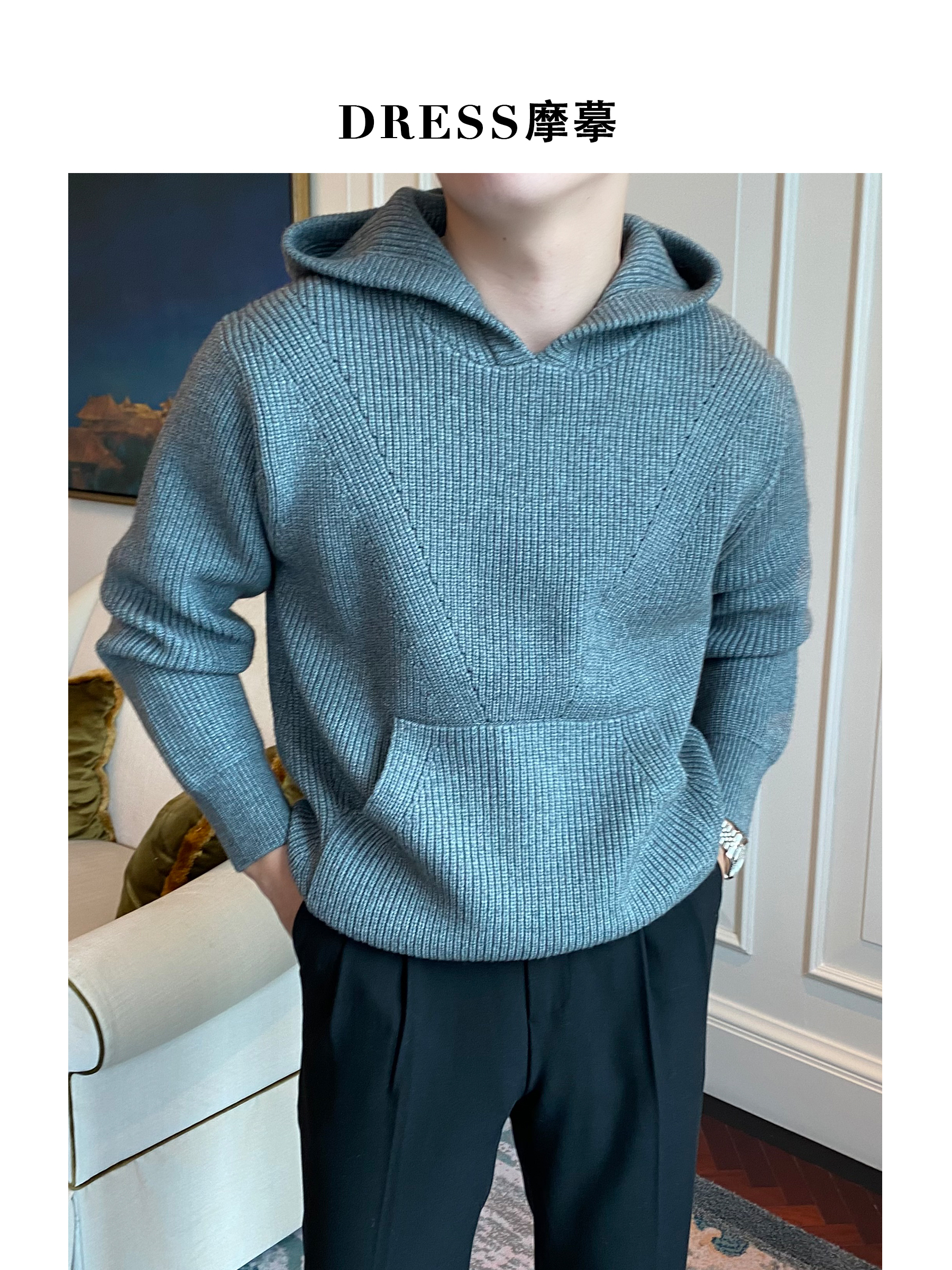 休闲加厚保暖连帽毛衣男士冬季新款韩版个性慵懒宽松百搭针织卫衣