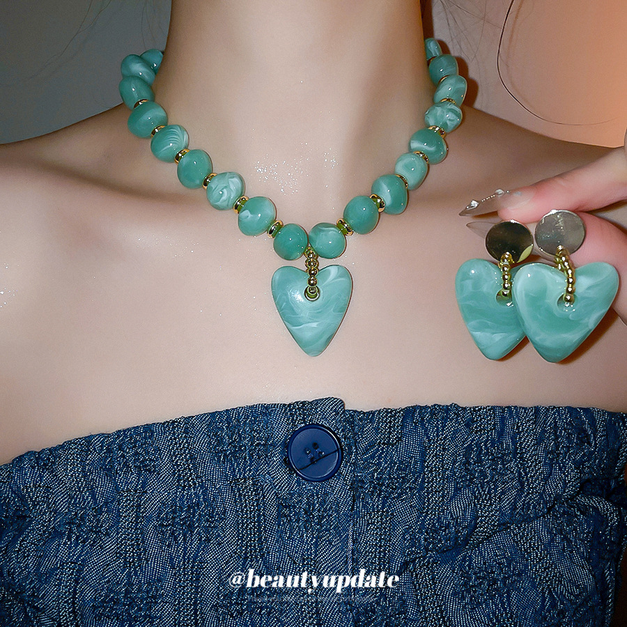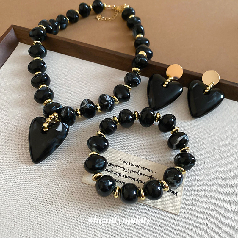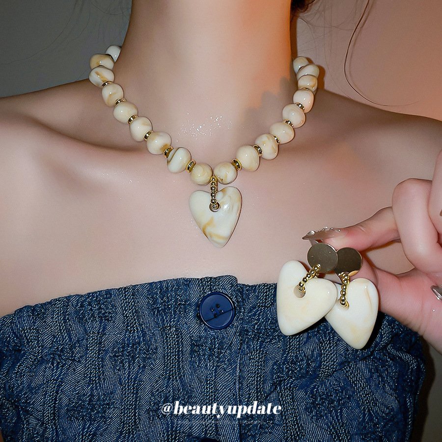 亚克力爱心项链手链耳钉休闲时尚气质小众首饰套装轻奢高级感饰品