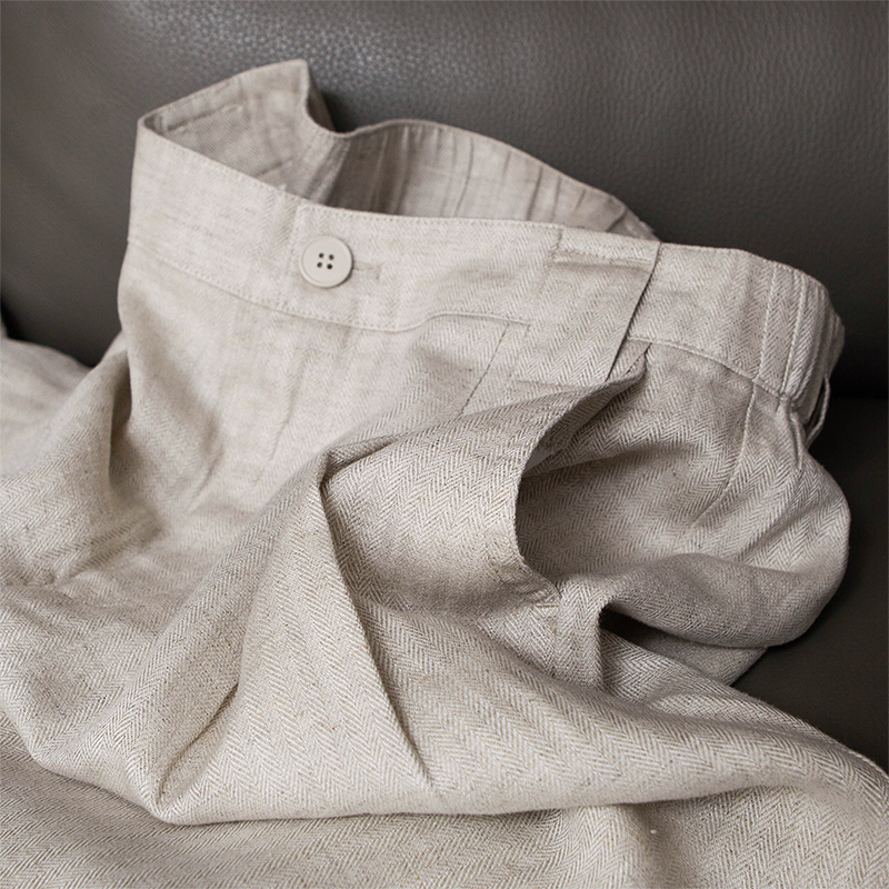 简约好穿显瘦高 舒爽透气人字纹天丝亚麻半松紧高腰直筒长裤25夏