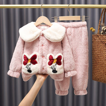 秋冬加厚母女装儿童珊瑚绒家居服