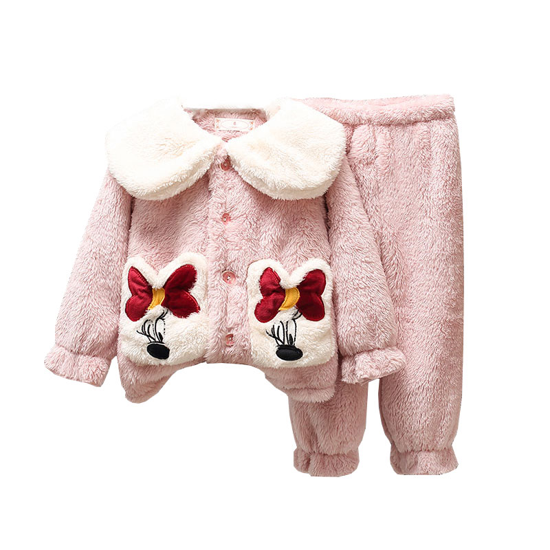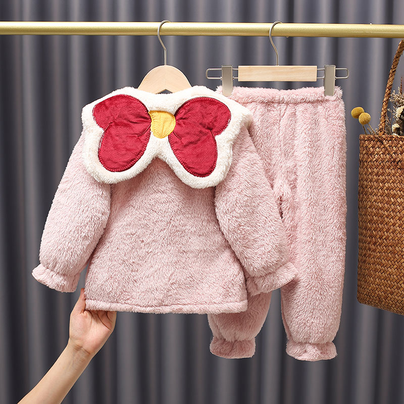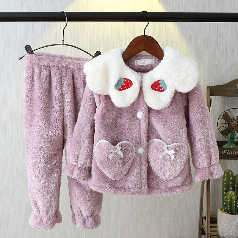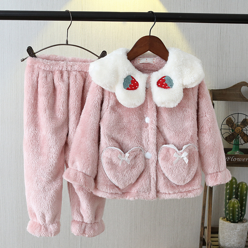 秋冬加厚长毛绒母女装儿童睡衣 亲子家居服中大童女童珊瑚绒套装