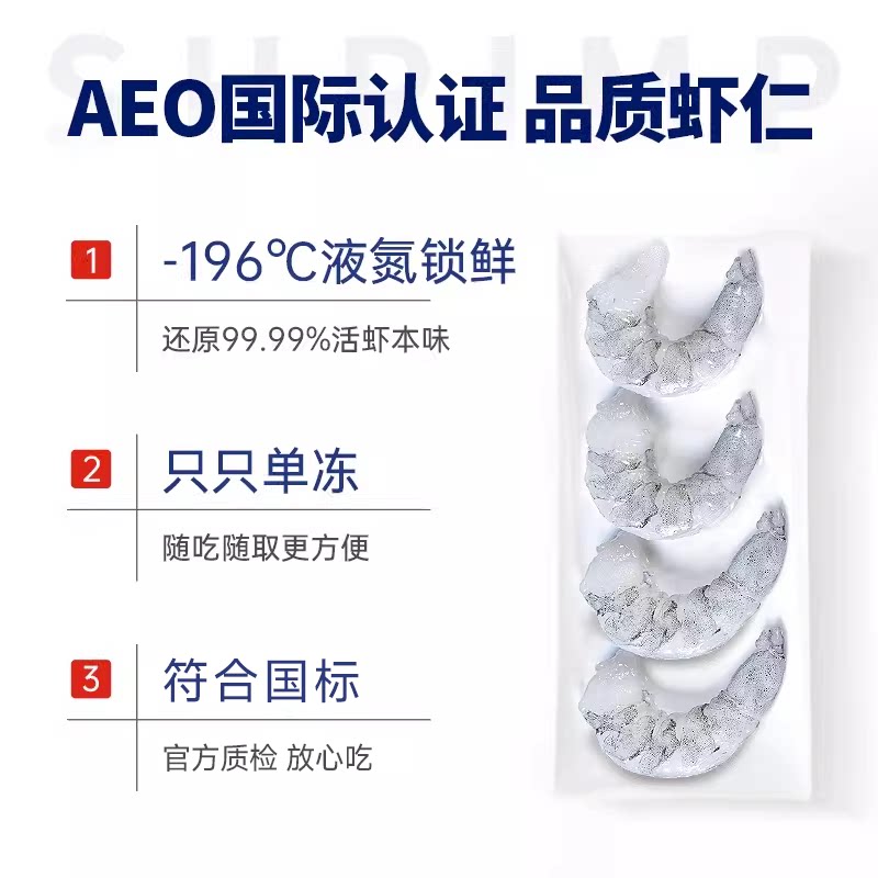 大虾仁鲜冻无冰青虾仁即食低脂去虾线冰冻鲜活速冻冷冻虾肉商用