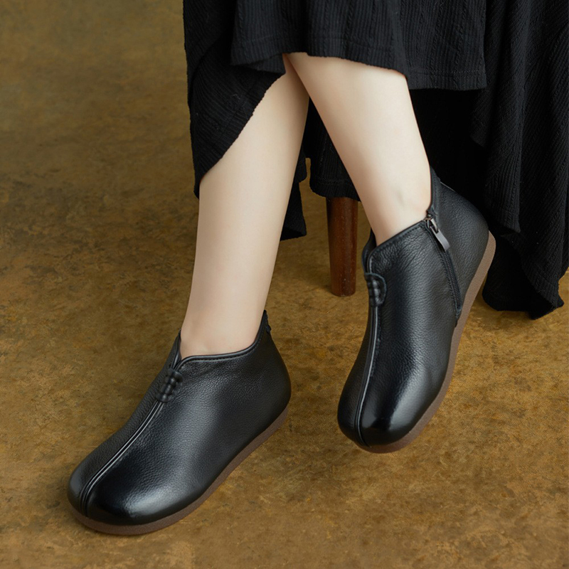 复古原创小众短靴女2025秋冬新款平跟软底妈妈鞋真皮时尚百搭女靴