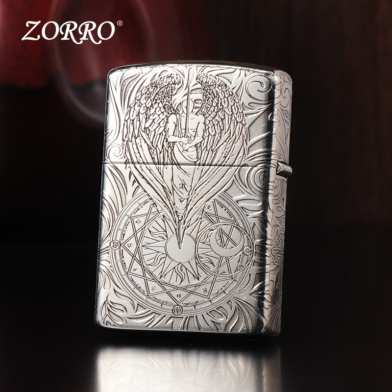 ZORRO/佐罗白铜五面精雕守护天使煤油防风打火机男女士打火机礼物