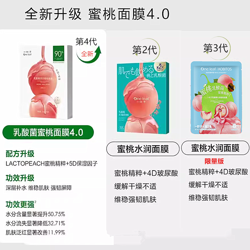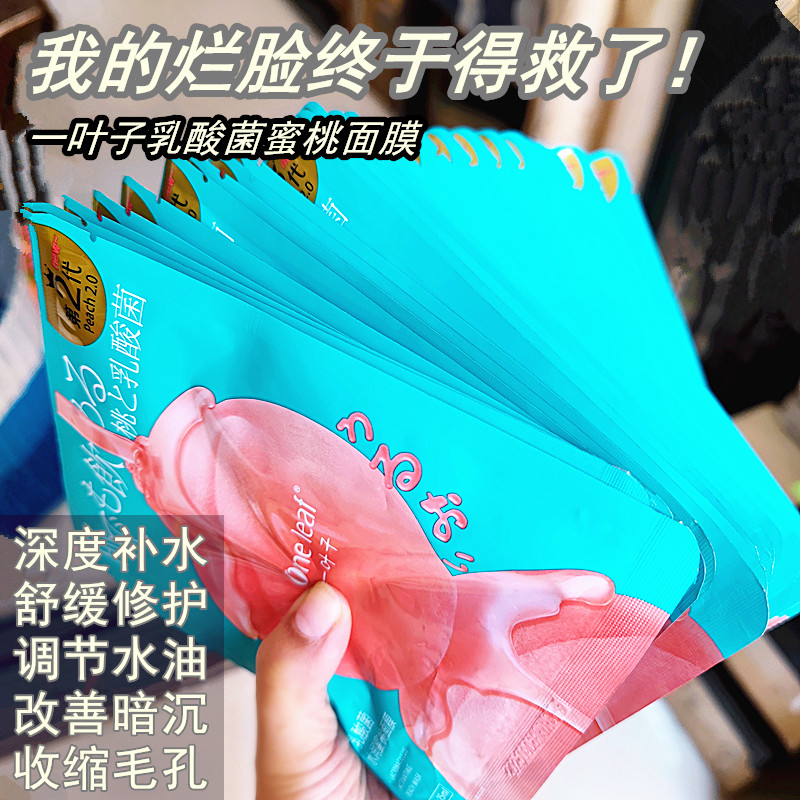 一叶子乳酸菌水蜜桃面膜补水保湿提亮暗沉舒缓嫩肤温和不刺激正品
