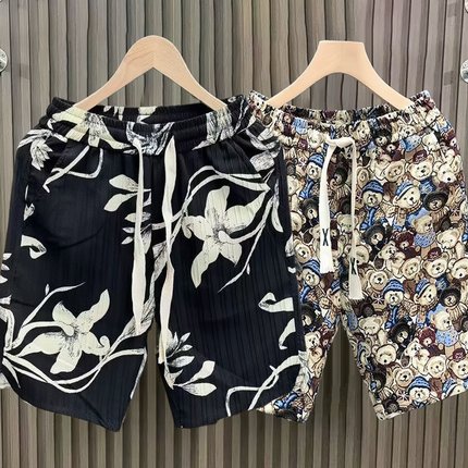沙滩裤男夏季薄款冰丝五分居家大裤衩外穿速干可下水游泳裤花短裤
