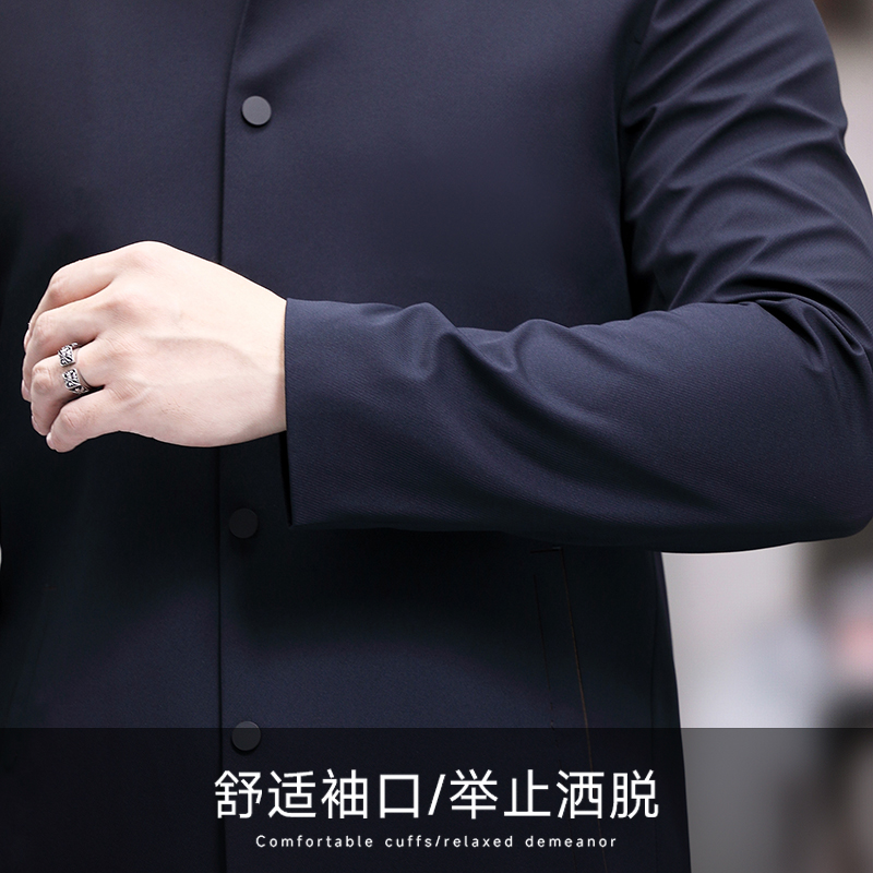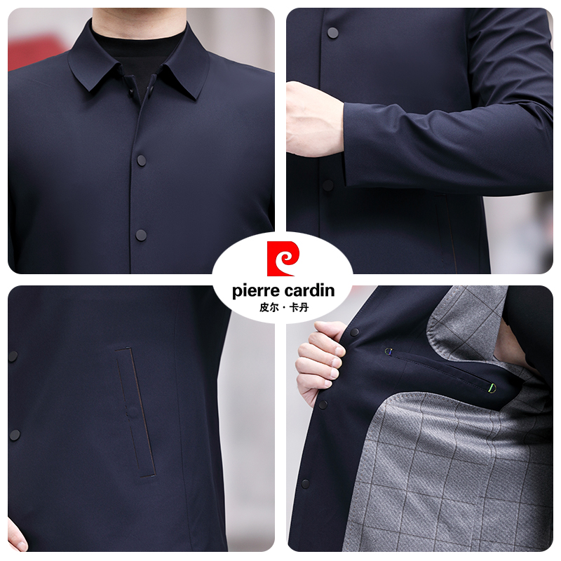 皮尔卡丹男装春秋款装新款中年商务行政夹克翻领男士秋装休闲外套
