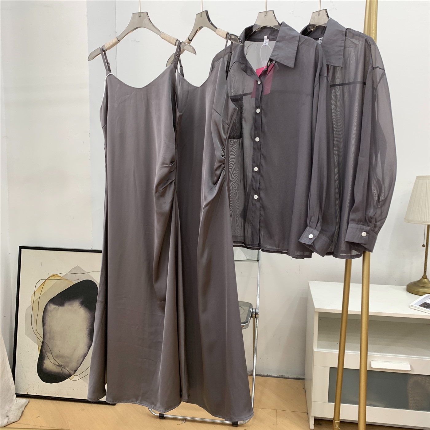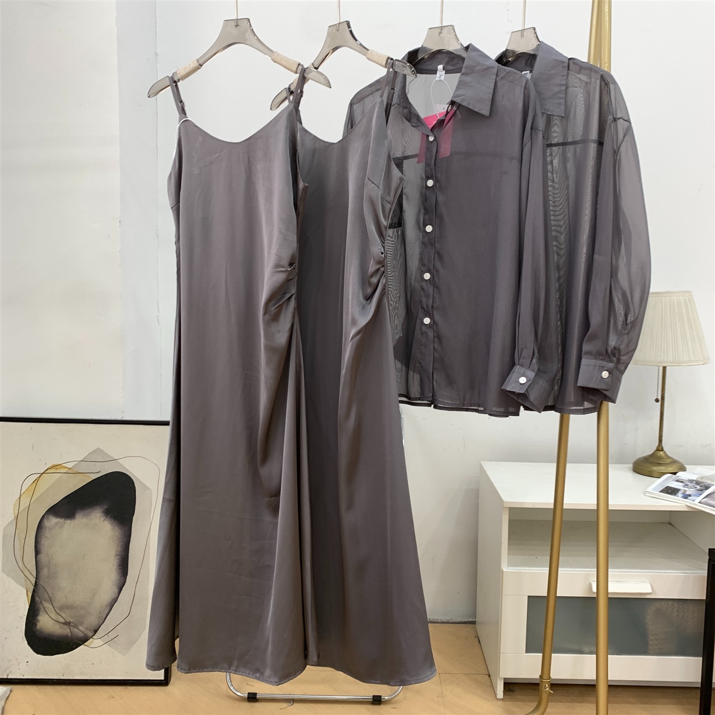 两件套秋季新款纯色吊带连衣裙搭休闲衬衫长袖上衣J#7