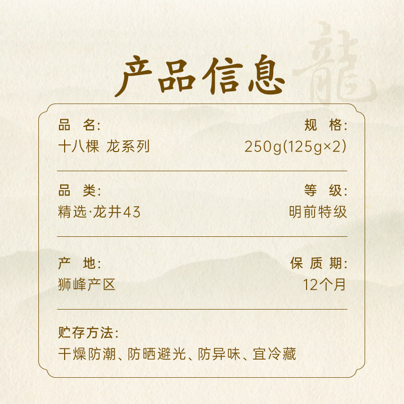26年春茶预售 十八棵龙02 明前特级 狮峰产区 西湖龙井茶250g礼盒