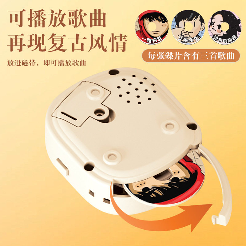 新款复古黑胶磁带唱片CD机钥匙扣可放碟片迷你录音播放器包包挂件