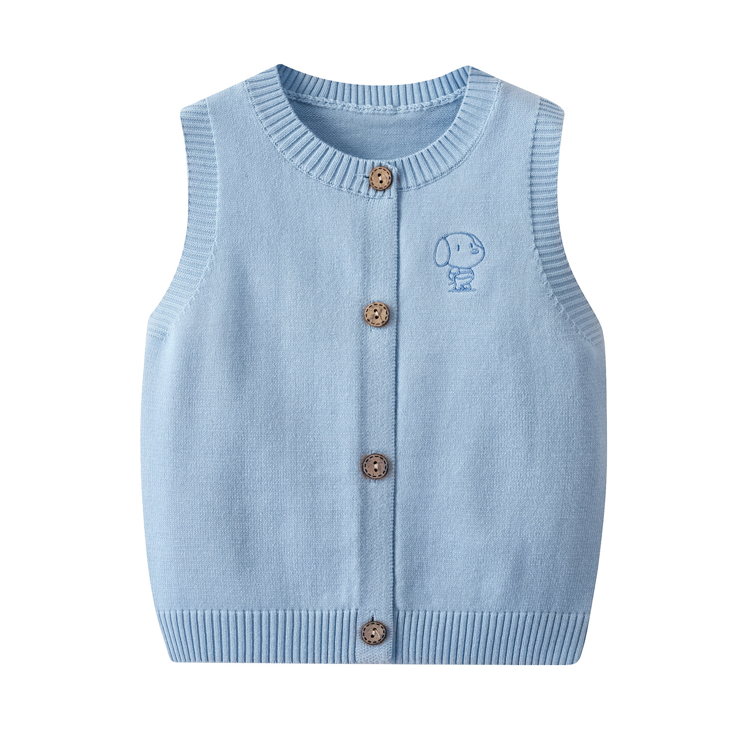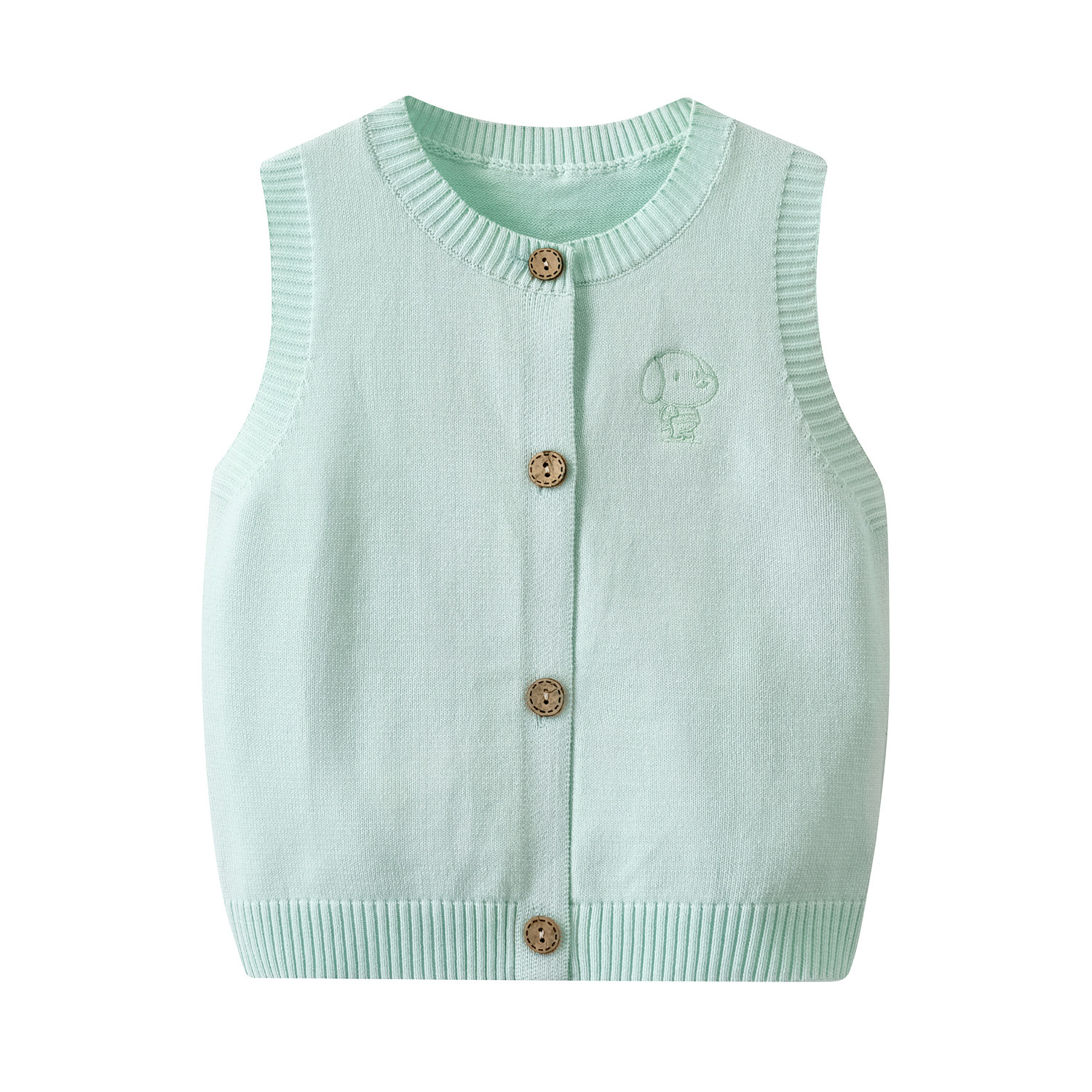 儿童春秋冬季薄款针织开衫背心男童女童马甲无袖毛衣纯色棉线坎肩