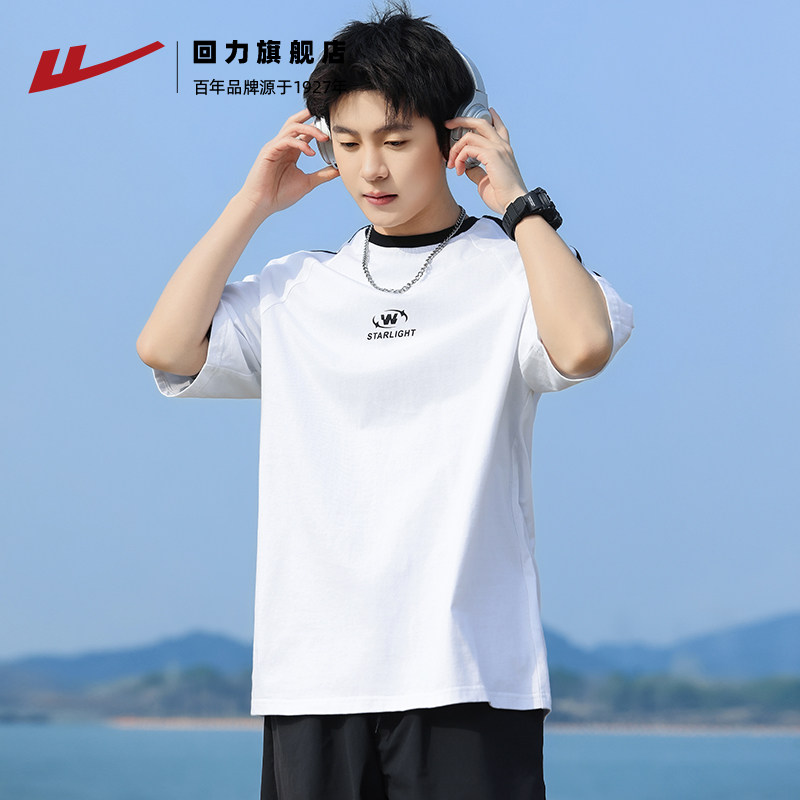 回力短袖T恤男夏2025新款纯棉白色设计感小众高级感痞帅圆领体恤
