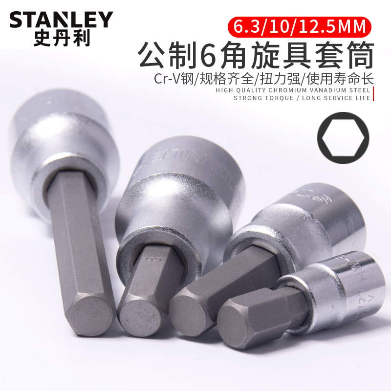 史丹利内六角套筒加长电动扳手批头套筒六角旋具螺丝起子头工具