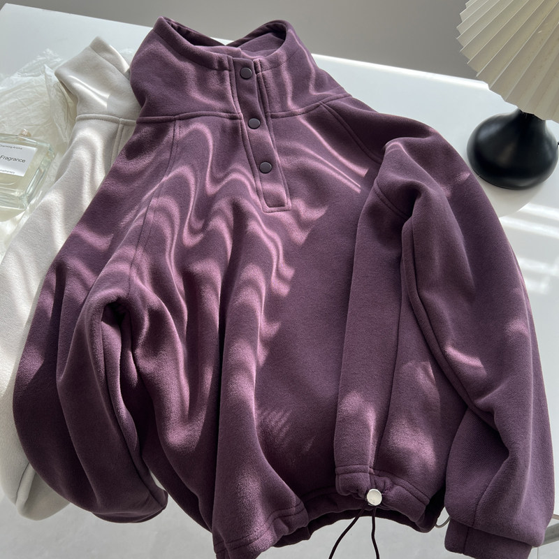 纯色连帽套头卫衣女加绒加厚宽松
