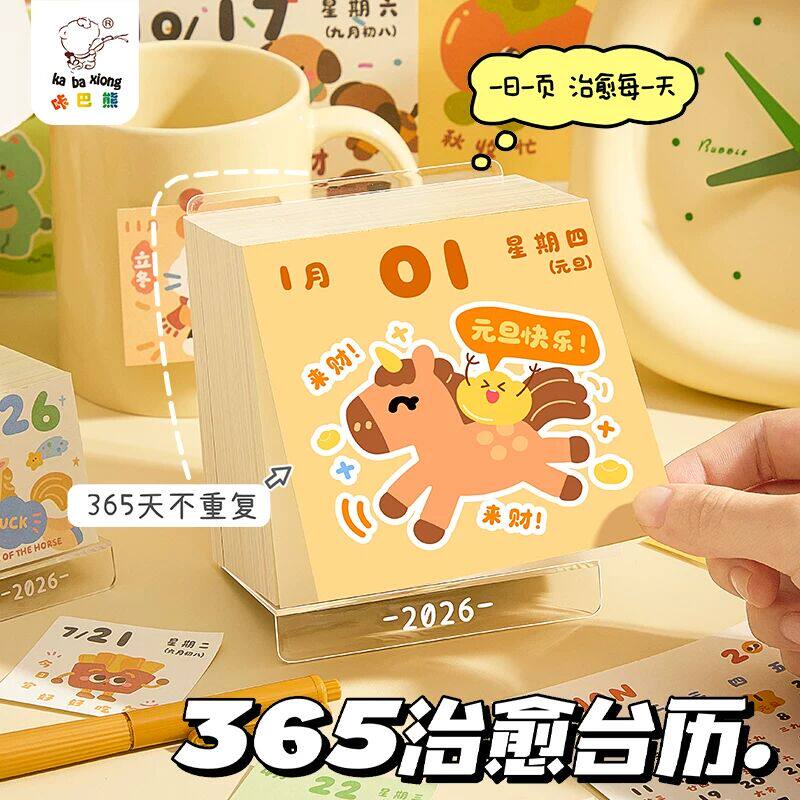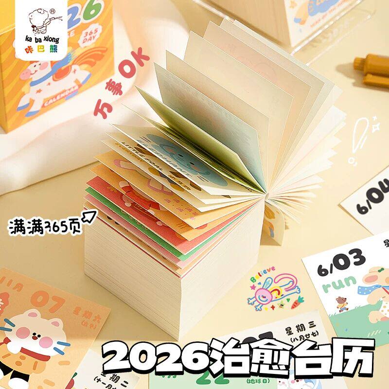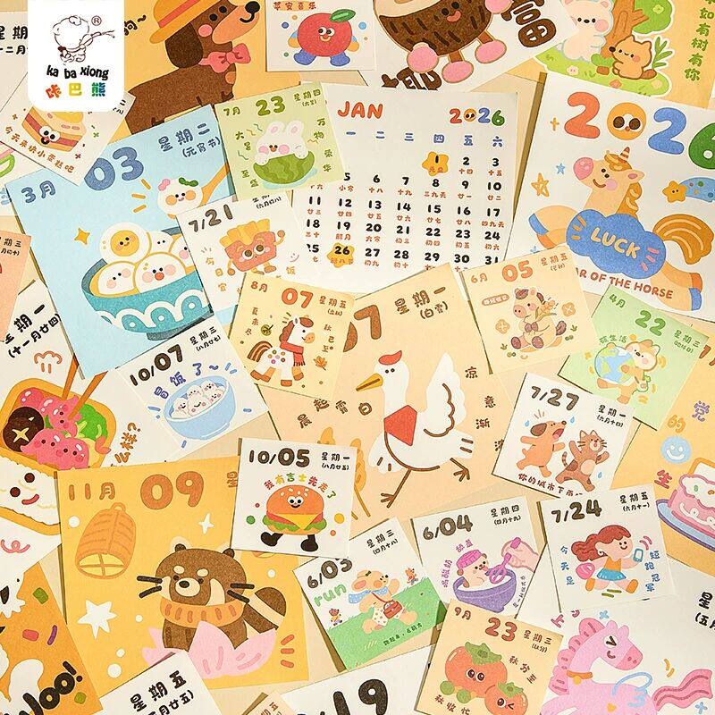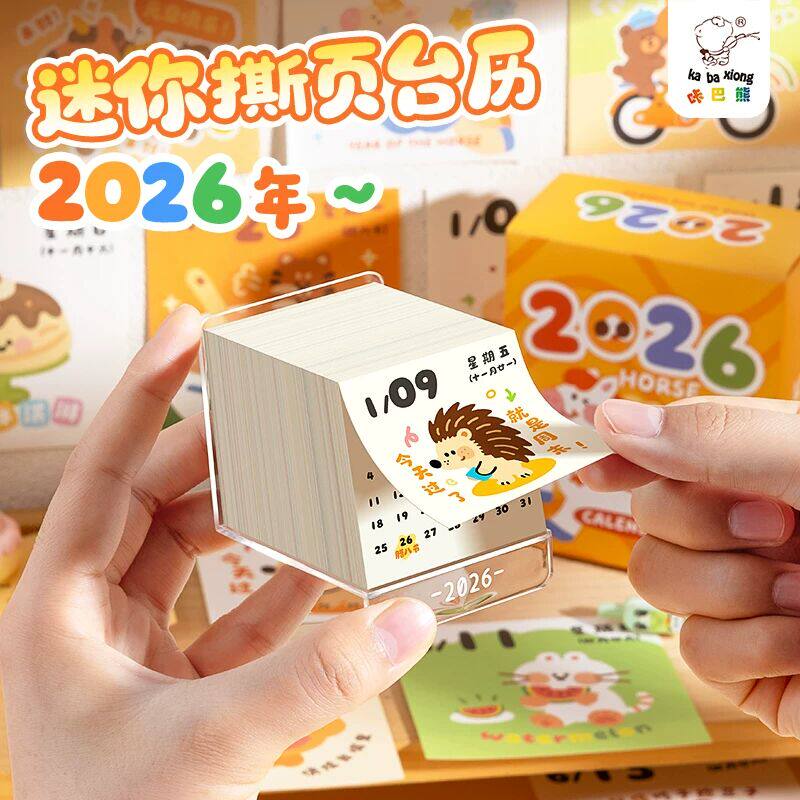 2026年治愈台历迷你翻页涂鸦日历儿童卡通可爱桌面摆件手账贴纸学