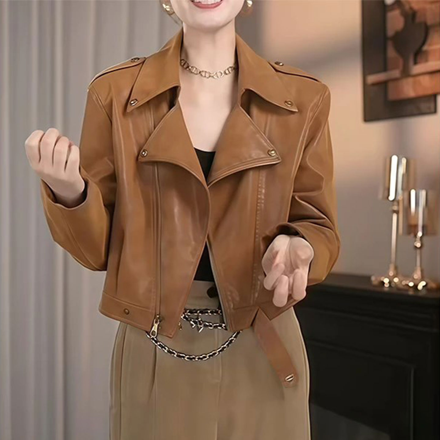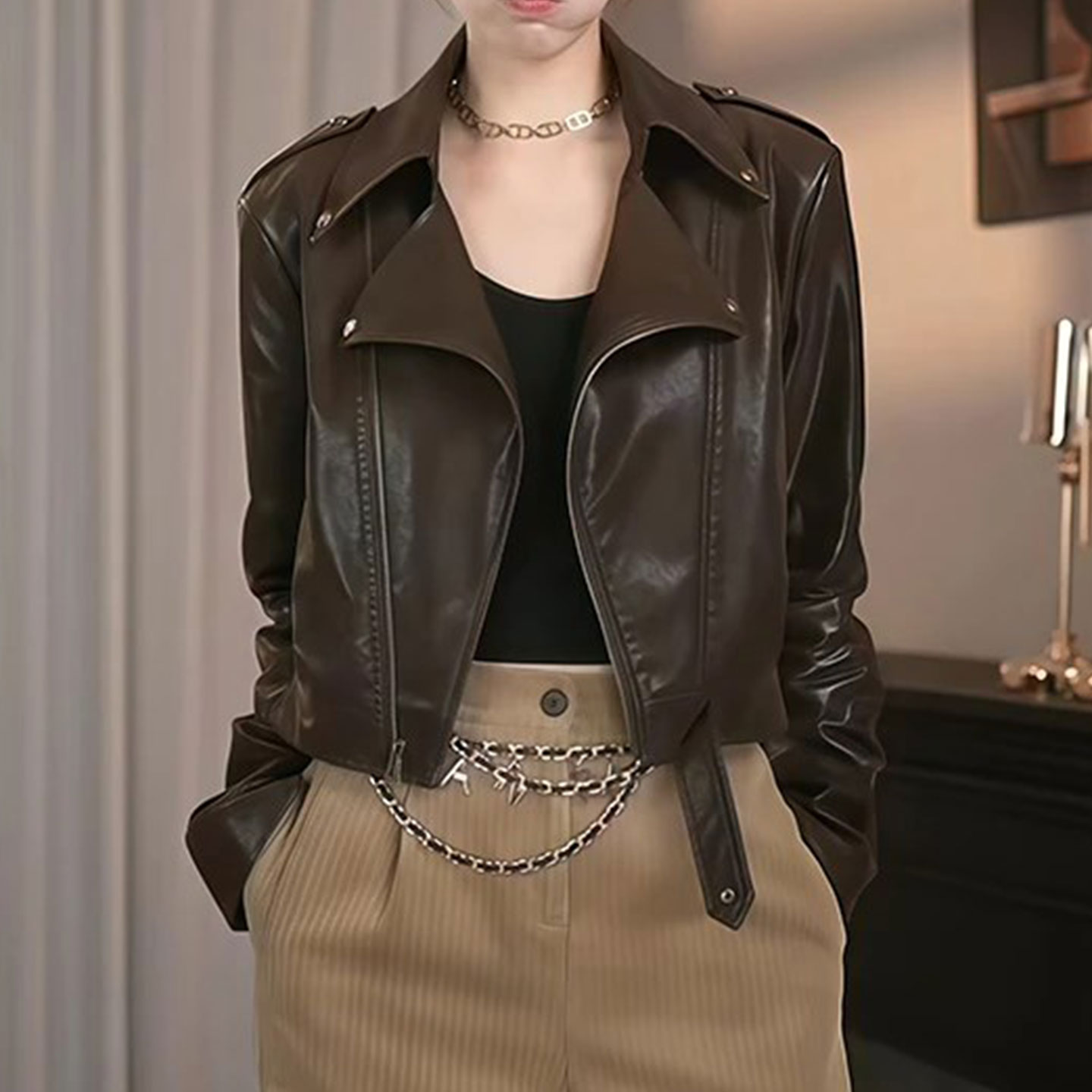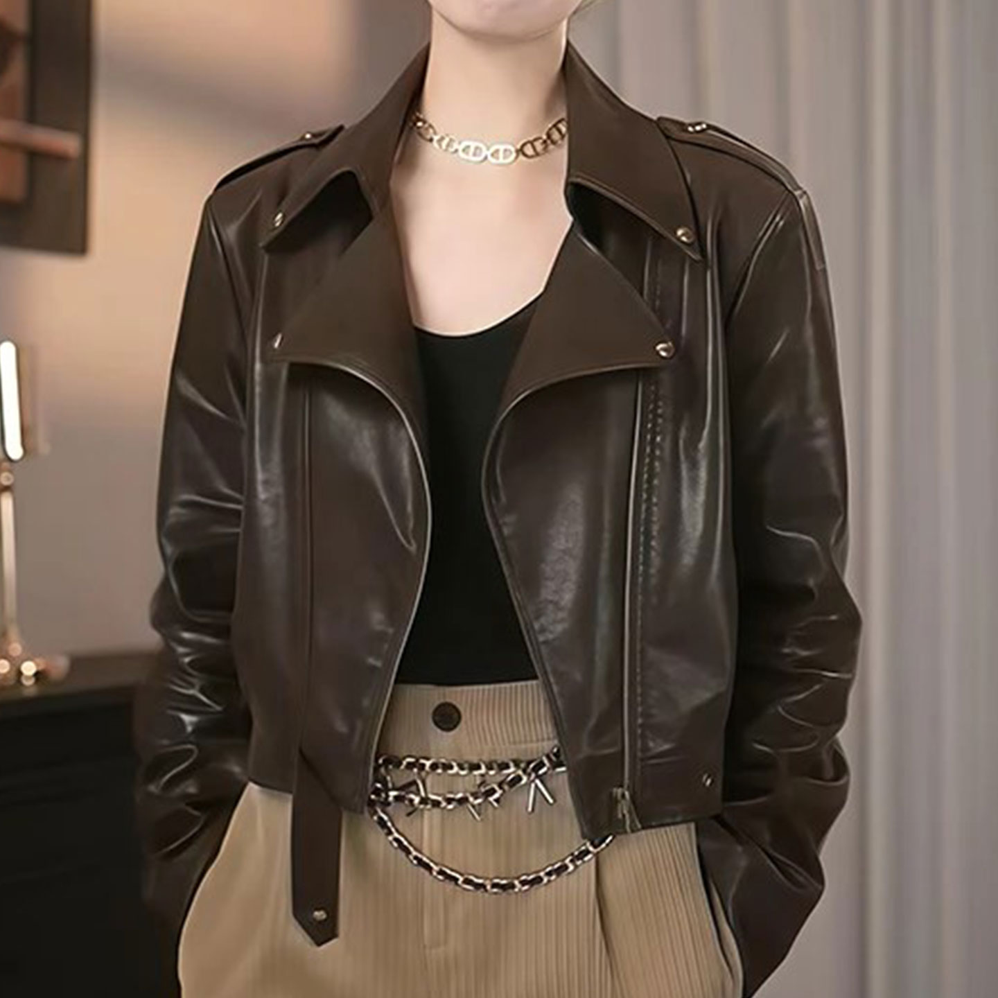 皮衣女2025秋装新款韩系时尚宽松休闲显瘦机车服皮外套皮衣上衣女