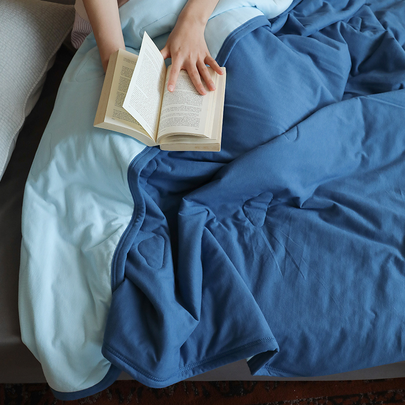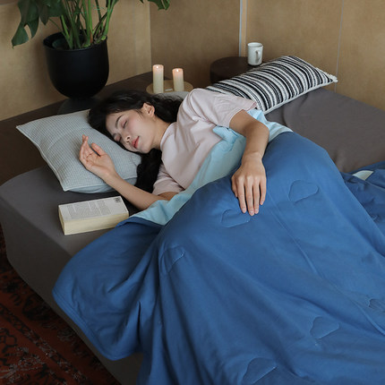简约风纯色双拼深蓝色针织纯棉全棉天竺棉空调被宿舍单双人夏凉被
