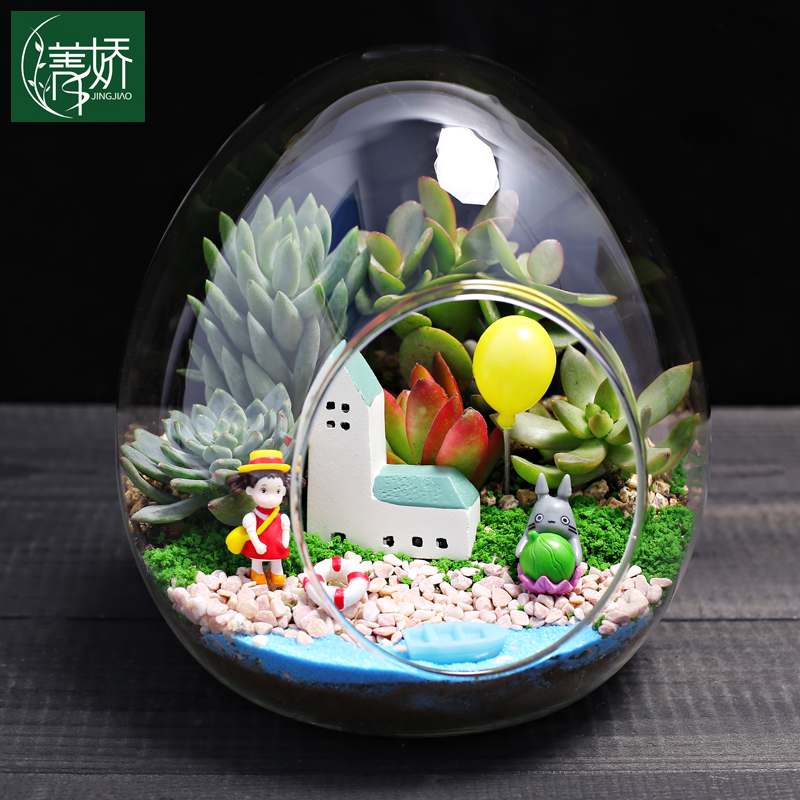 大蛋玻璃瓶多肉肉组合植物盆栽 迷你多肉小绿植盆景微景观diy材料