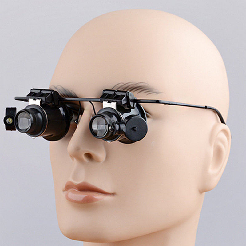 双眼式钟表手机维修放大镜带灯20倍古玩珠宝鉴定二十倍扩大镜包邮
