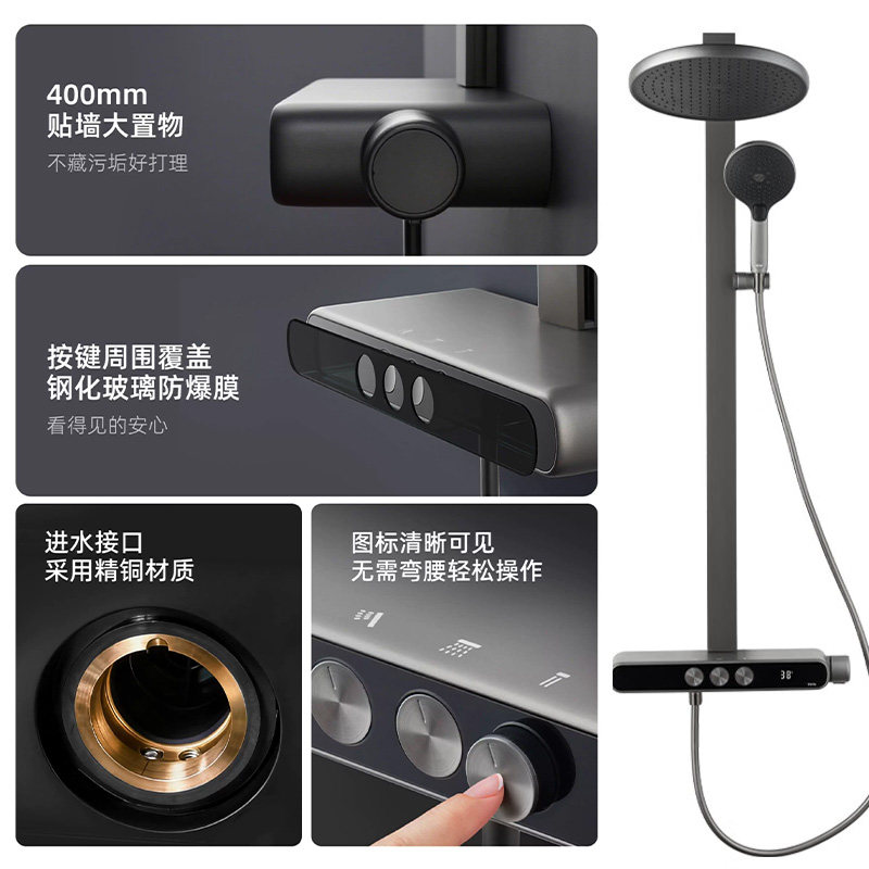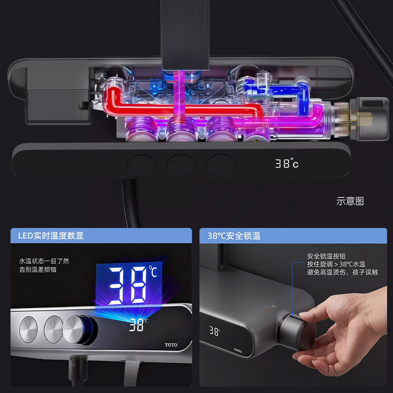 TOTO新恒温淋浴花洒TBW12480智能数显枪灰色大置物台MY5(05-I)