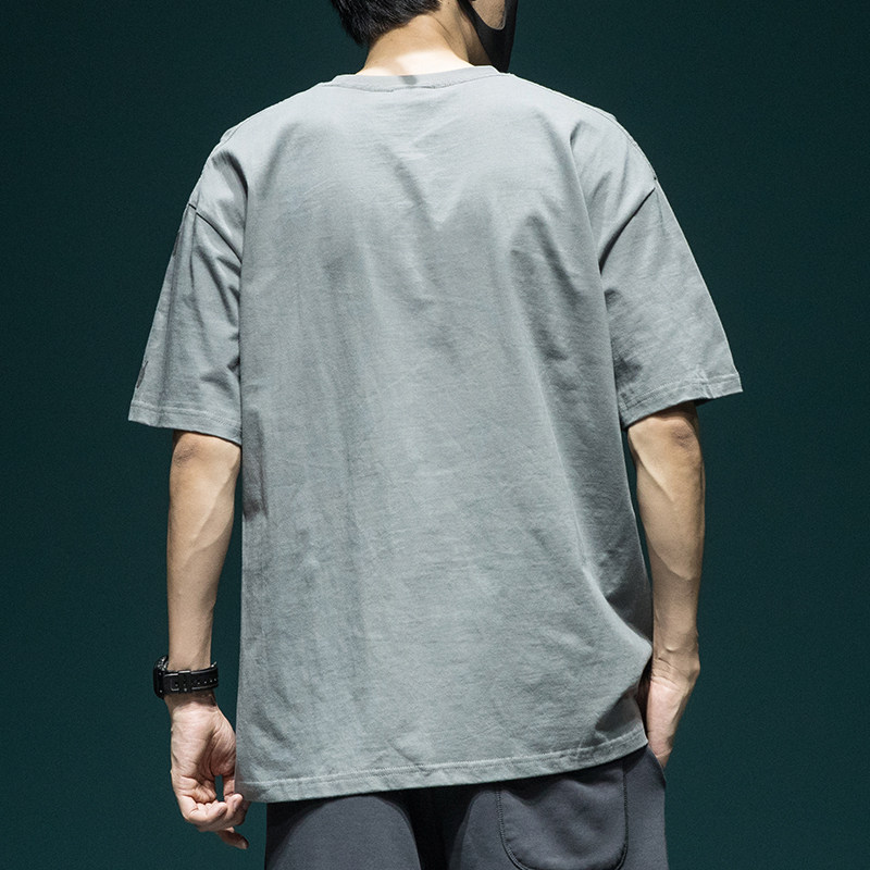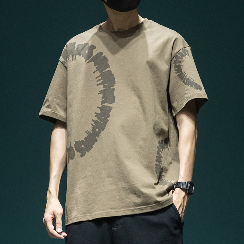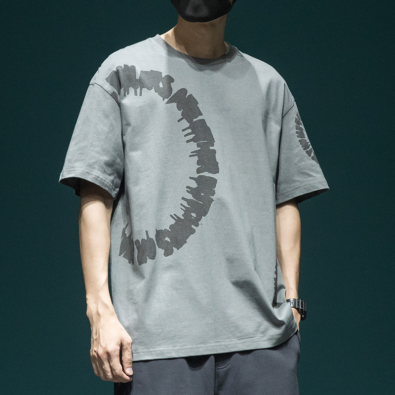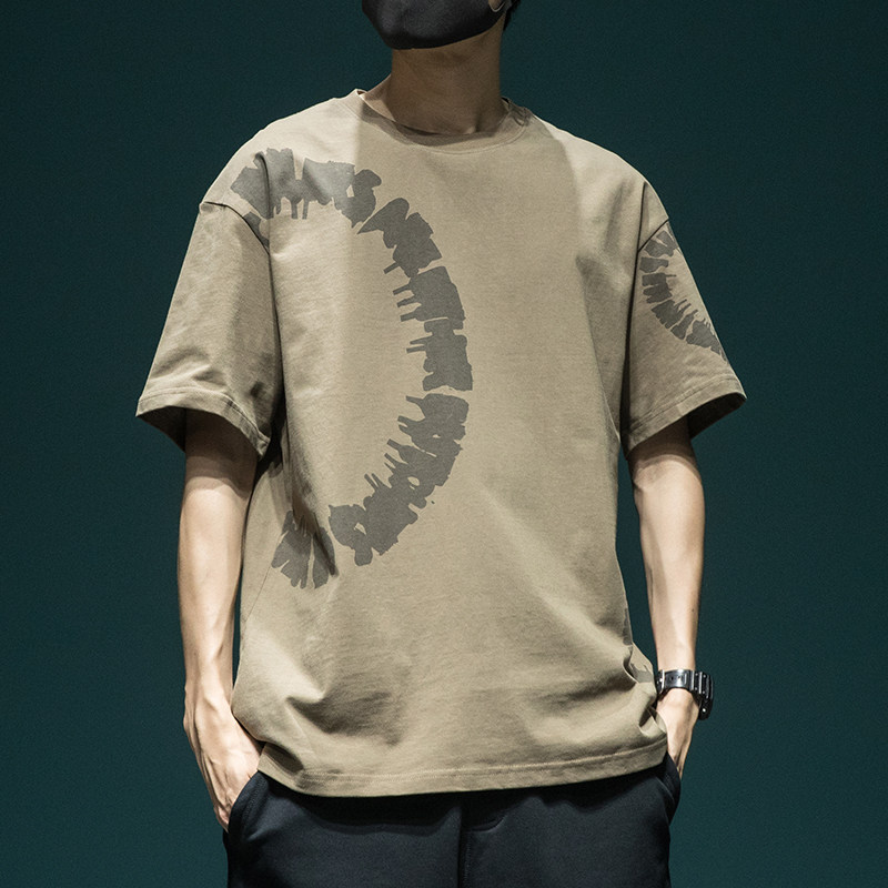 日系重磅水洗短袖T恤男夏季纯棉宽松大码体恤个性印花休闲半袖tee