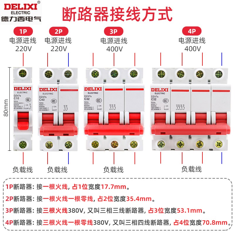 德力西dz47s空气开关1p空开2p家用3断路器40a小型63a电闸4家用32a