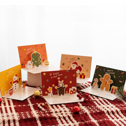 可爱卡通立体圣诞贺卡儿童节日祝福留言对折小卡片带信封韩国创意