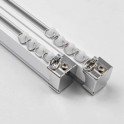 新款加厚铝合金窗帘轨道杆纳米静音双轨单轨滑轨滑轮导轨顶装侧装