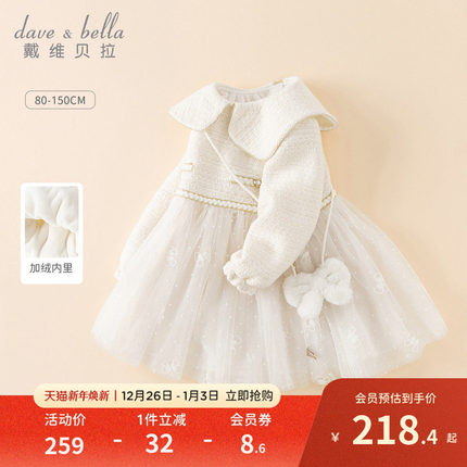 戴维贝拉女童连衣裙冬装新款宝宝洋公主裙儿童加绒裙子气质童装